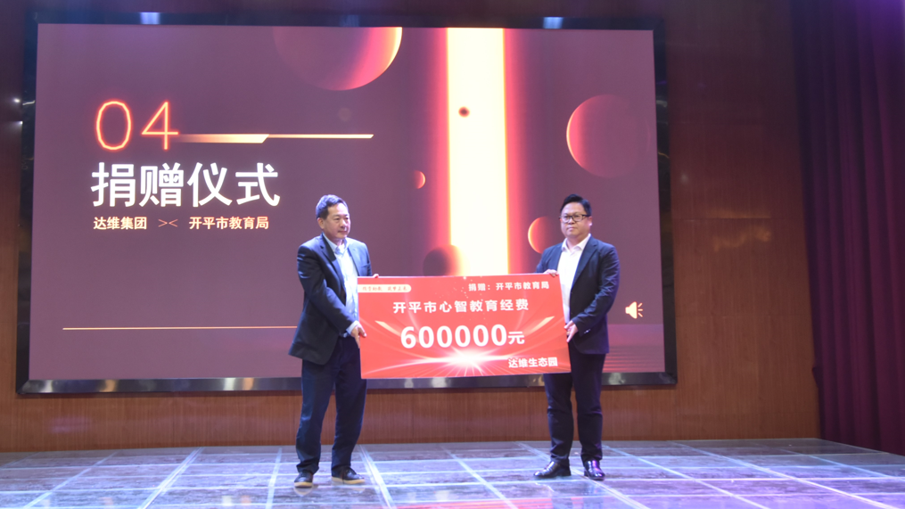儀式上,開(kāi)平市達(dá)維集團(tuán)向開(kāi)平市教育局捐贈(zèng)“心智教育經(jīng)費(fèi)”60萬(wàn),并一同與優(yōu)度教育、橙光教育共同簽訂合作協(xié)議。開(kāi)平“優(yōu)度教育第三空間”項(xiàng)目旨在積極響應(yīng)國(guó)家關(guān)于加強(qiáng)中小學(xué)生心理健康教育的號(hào)召,進(jìn)一步推動(dòng)開(kāi)平市中小學(xué)校心理健康“十百千”計(jì)劃有效開(kāi)展,幫助20所學(xué)校,提升200位心理老師的專(zhuān)業(yè)技術(shù)技能,幫助1000個(gè)家庭的學(xué)生心理教育,提升開(kāi)平市各中小學(xué)心理健康教育水平,讓心理健康走進(jìn)校園,構(gòu)建和諧開(kāi)平。