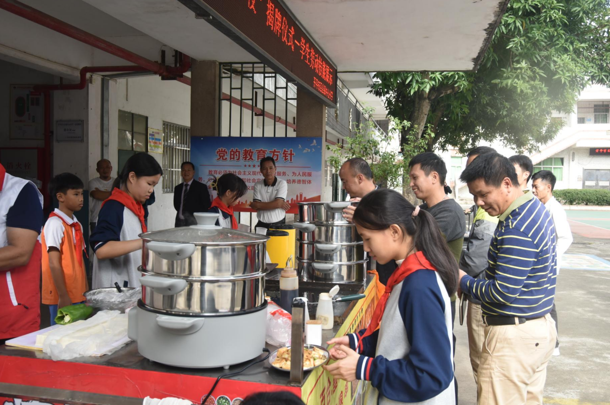 學(xué)生們現(xiàn)場制作百合餃子、檸檬茶、豆腐角、煎餃等,展示勞動教育成果成效。