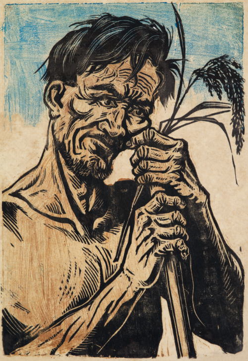苦笑 李樺 23x15.5cm 套色版畫 1940年 廣東美術(shù)館藏