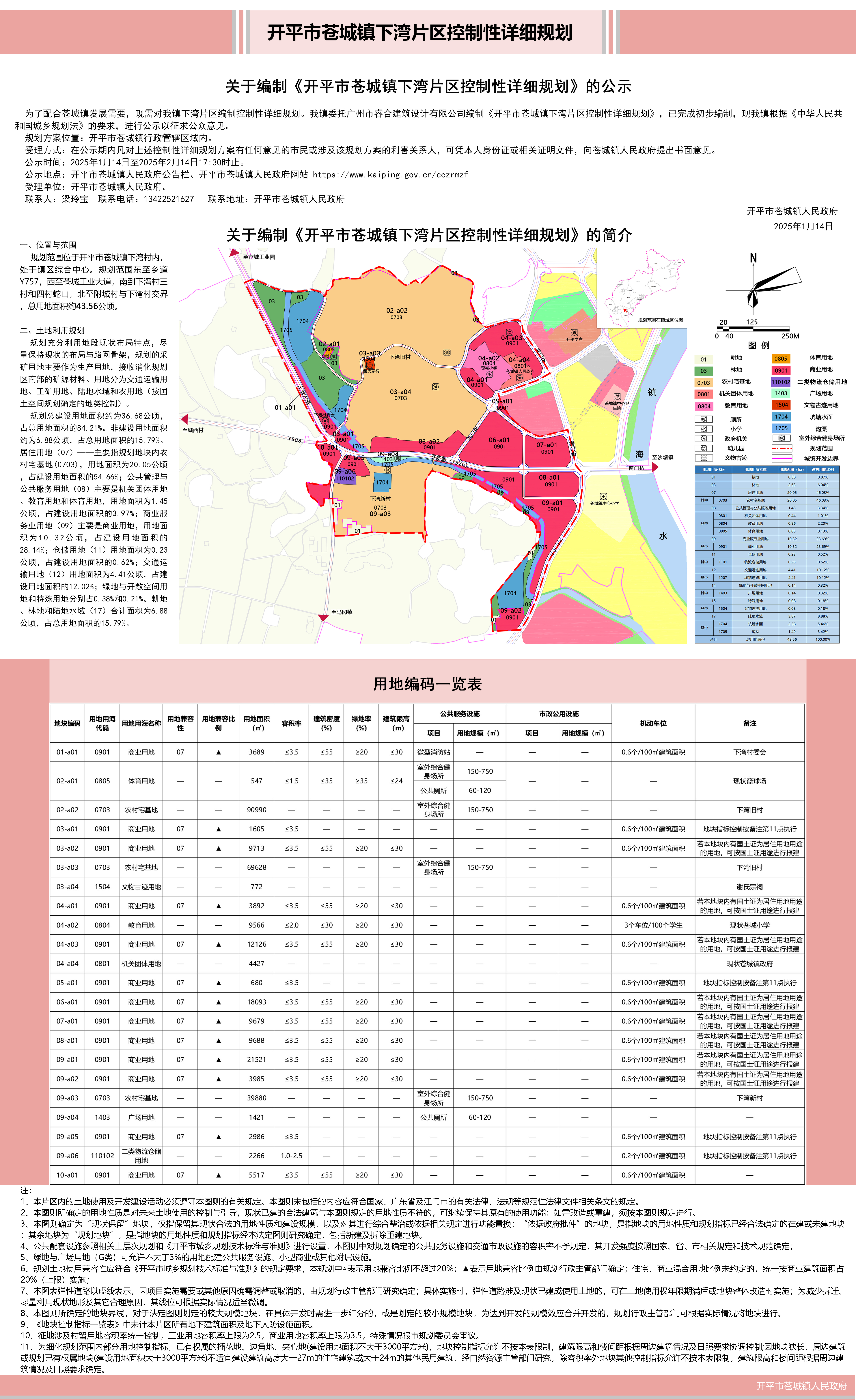 聯(lián)系電話:13422521627 聯(lián)系地址:開平市蒼城鎮(zhèn)人民政府 開平市蒼城鎮(zhèn)人民政府 2025年1月14日 開平市蒼城鎮(zhèn)下灣片區(qū)控制性詳細(xì)規(guī)劃.jpg