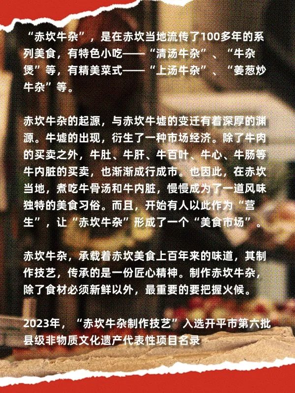 2023年,“赤坎牛雜制作技藝”入選開平市第六批縣級非物質(zhì)文化遺產(chǎn)代表性項目名錄。