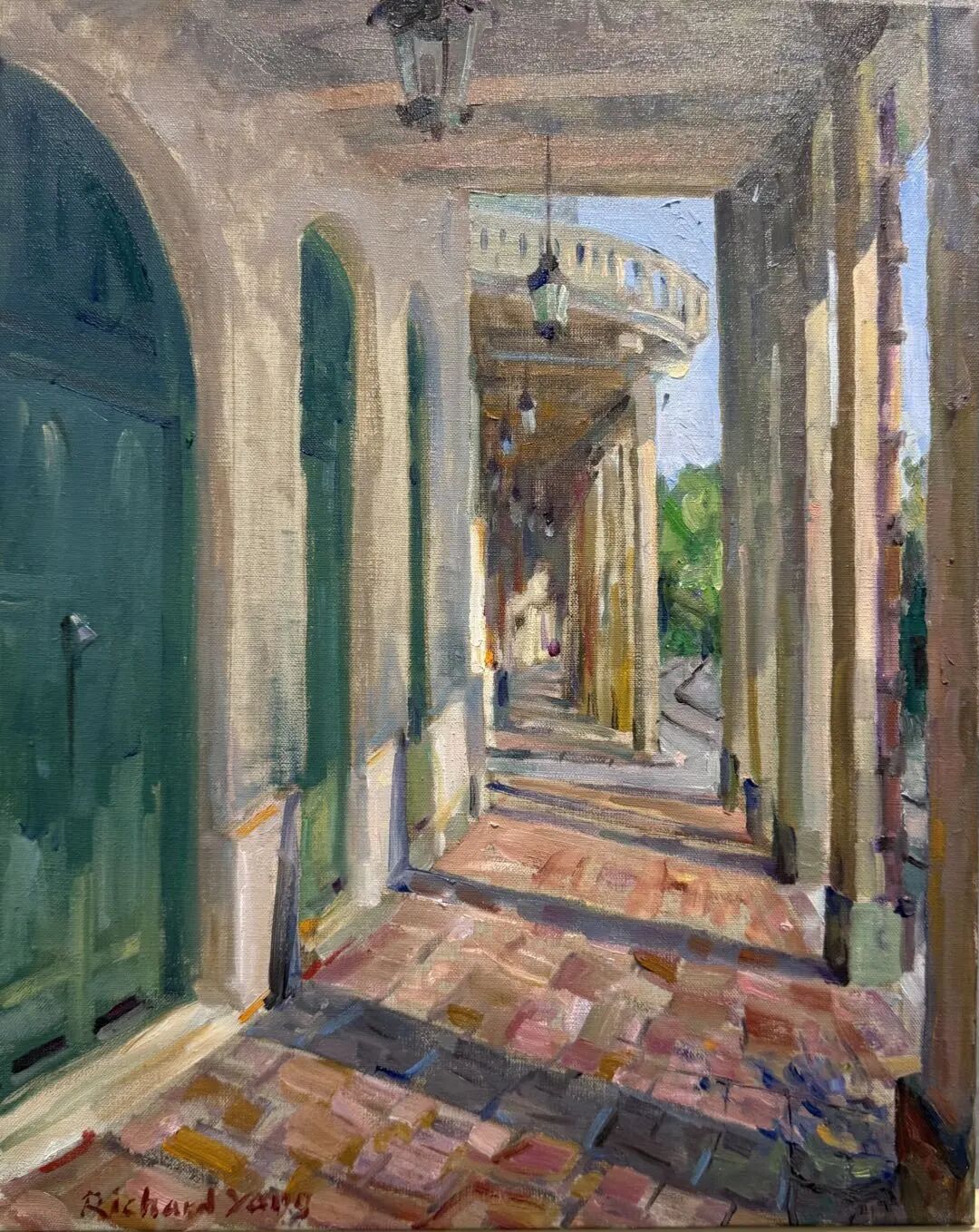 楊軍《赤坎僑廊光影》 油畫 45cm×65cm 2025年