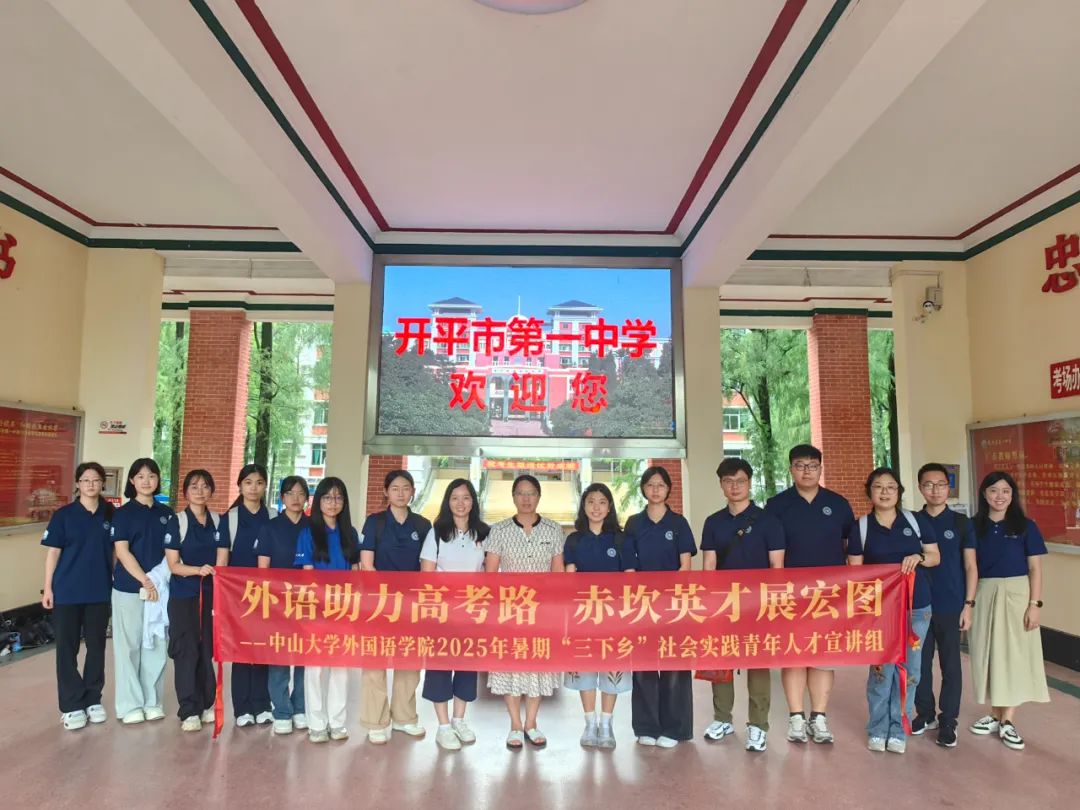 近日,中山大學(xué)外國語學(xué)院暑期公益實踐團(tuán)一行32人赴赤坎鎮(zhèn),開展“三下鄉(xiāng)” 社會實踐暨 “百千萬工程” 突擊隊行動。實踐團(tuán)分為三個小分隊,分別圍繞助學(xué)宣講、文旅調(diào)研、鄉(xiāng)村教育三大領(lǐng)域開展活動,為赤坎鎮(zhèn)教育提質(zhì)、社區(qū)服務(wù)優(yōu)化和農(nóng)文旅融合發(fā)展注入青春力量。團(tuán)隊分3組行動,其中一分隊到開平市第一中學(xué),為即將邁入高三的學(xué)子送上“升學(xué)大禮包”。隊員們詳細(xì)介紹中山大學(xué)辦學(xué)特色、招生政策及資助體系,重點(diǎn)分享英語學(xué)科的解題思路與分析方法。結(jié)合自身備考經(jīng)歷,隊員們還講解了時間規(guī)劃、心態(tài)調(diào)節(jié)等實用經(jīng)驗?;迎h(huán)節(jié)中,同學(xué)們圍繞升學(xué)疑問積極提問,隊員們結(jié)合政策要求和親身經(jīng)歷耐心解答,現(xiàn)場氛圍熱烈溫馨,為高三學(xué)子增添了備考動力。