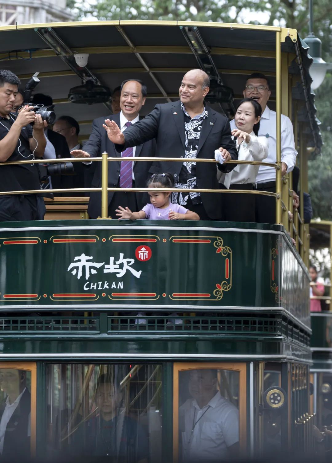 “我到訪過很多國家,但這次在中國的經(jīng)歷很不一樣,令我終生難忘?!?/span>7月8日,在擁有百年歷史的江門開平市赤坎鎮(zhèn)司徒氏圖書館內(nèi),瑙魯總統(tǒng)戴維·阿迪昂輕輕翻開族譜,激動之情溢于言表。他在一本族譜扉頁上簽名,向圖書館贈送以瑙魯?shù)貓D為主題的紀念品,還熱情地招呼家鄉(xiāng)親人合影留念。