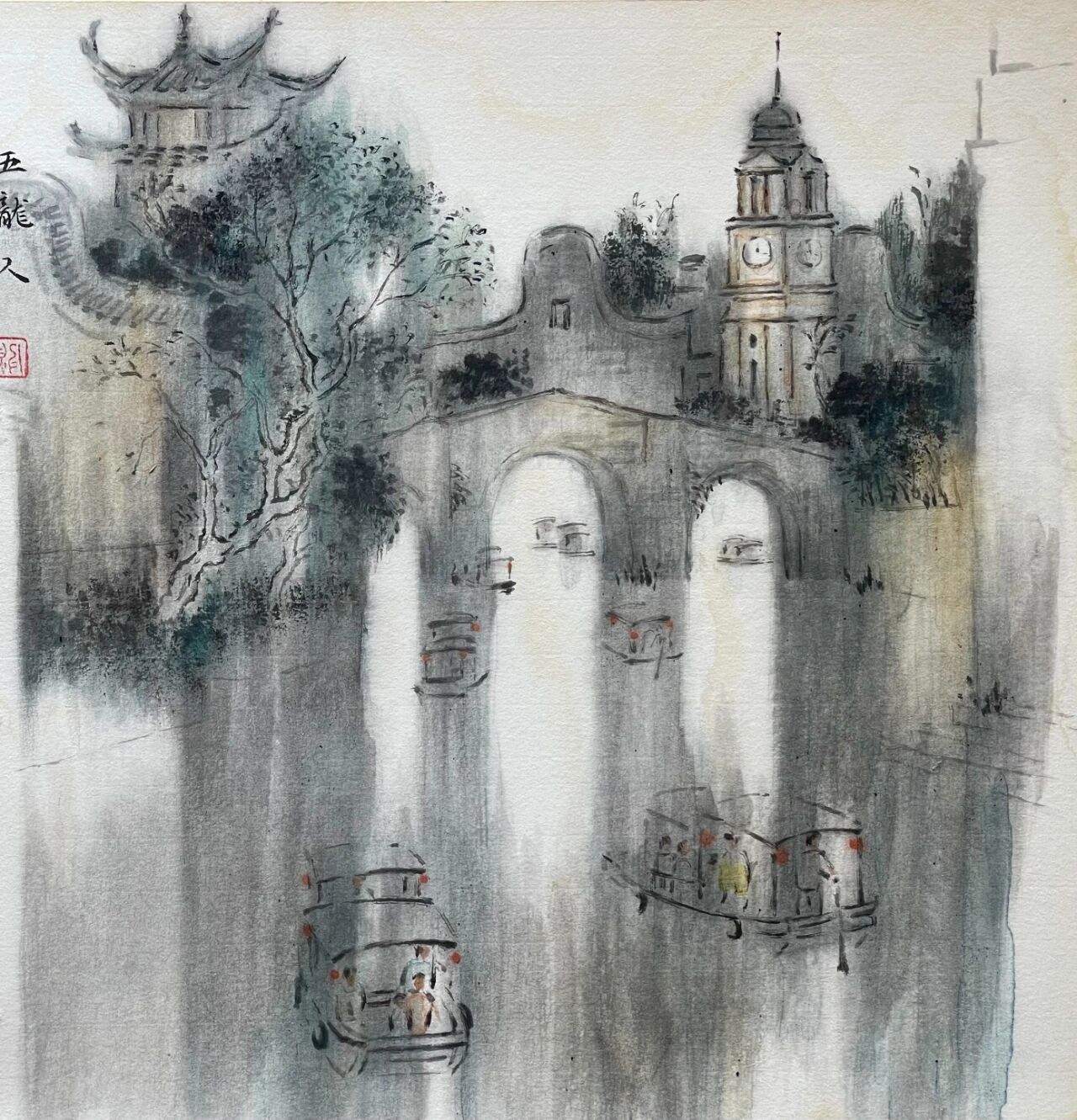 敖廣宗《赤坎僑水古韻》中國畫 40cm×60cm 2025年