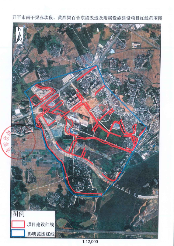 附圖:開平市南干渠赤坎段、黃烈渠百合東段改造及附屬設(shè)施建設(shè)項目紅線范圍圖。