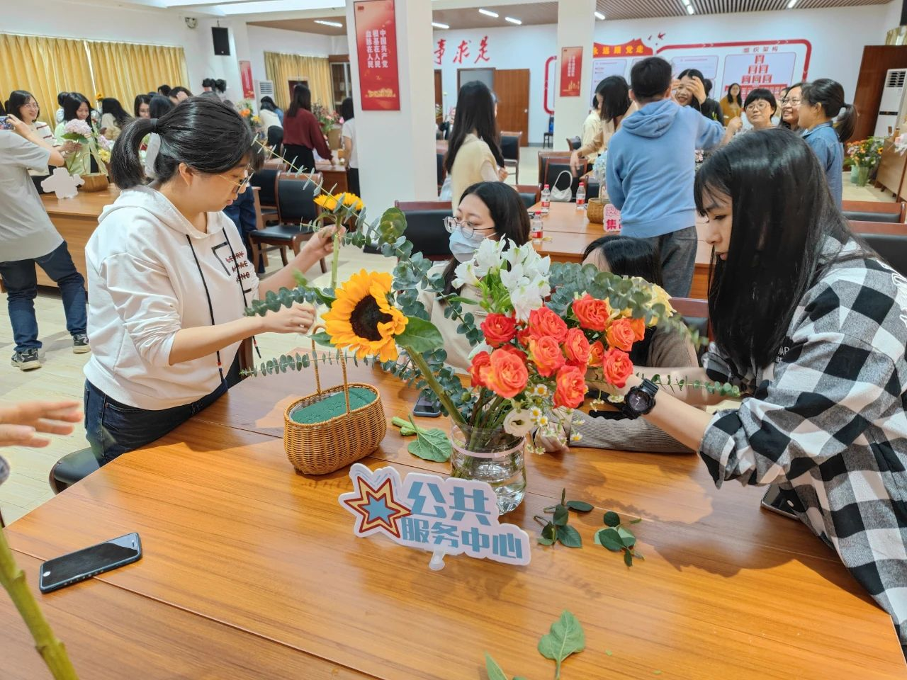 活動伊始,翠山湖管委會總經(jīng)濟師、婦委會主任張淑媛同志向大家致以節(jié)日的問候,來自不同崗位的女干部職工歡聚一堂,喜慶自己的節(jié)日?;顒又?,專業(yè)花藝師詳細講解了插花的基本步驟、色彩搭配技巧等知識,耐心指導大家進行插花。在修剪、插藍、點綴過程中,各女干部職工以自己喜歡的方式,自由表達,飽享鮮花裝點的美好時刻。隨后,大家分成12個隊伍開始進行團體和個人花籃插花制作,不久,一籃藍漂亮雅致的花藝作品便在歡聲笑語中誕生了。大家陶醉其中,感受著從自己手中綻放的浪漫?,F(xiàn)場頓時成為花的海洋,氣氛溫馨而浪漫。