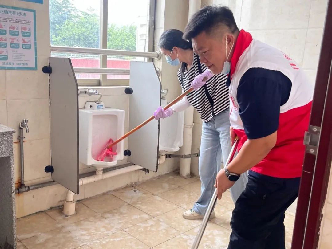 在校園周邊整治現(xiàn)場(chǎng),黨員干部職工志愿者化身“環(huán)境衛(wèi)士”,以校園圍墻周邊的沿街商鋪、背街小巷為重點(diǎn)區(qū)域,深入排查衛(wèi)生盲區(qū)。他們對(duì)周邊停車場(chǎng)、溝渠、下水道口、廢舊輪胎等易積水區(qū)域進(jìn)行徹底清理,不放過(guò)任何一個(gè)可能孳生蚊蟲的“死角”,讓原本雜亂的角落變得整潔有序。