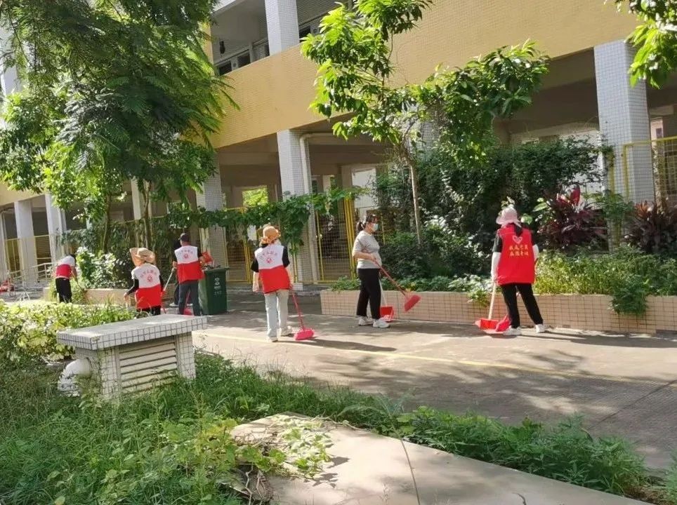 在校園內(nèi),志愿者們分工合作,分片區(qū)細(xì)致排查校園內(nèi)每一處角落,認(rèn)真清理花槽里的垃圾、樹(shù)下草叢枯葉、教學(xué)樓衛(wèi)生死角、操場(chǎng)積水、下水道堵塞物等一切有可能孳生蚊蟲的隱患點(diǎn),全力阻隔蚊媒傳播鏈。