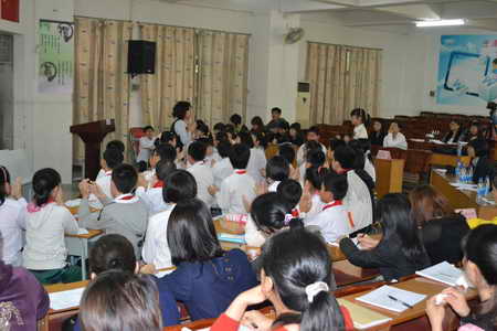 為加強(qiáng)學(xué)生思想道德教育,吸引和拉動(dòng)學(xué)校、家庭、社會(huì)成員共同參與道德建設(shè)。3月27日下午,長(zhǎng)沙中心學(xué)校在譚宏帙紀(jì)念小學(xué)舉辦“道德講堂”觀摩活動(dòng)。長(zhǎng)沙中心學(xué)校領(lǐng)導(dǎo),關(guān)工委老同志,長(zhǎng)沙各學(xué)校政工領(lǐng)導(dǎo)和班主任代表,以及譚宏帙紀(jì)念小學(xué)全體班主任和部分學(xué)生共150多人參加這次觀摩活動(dòng)。 在觀摩活動(dòng)中,譚宏帙紀(jì)念小學(xué)結(jié)合本校德育科研課題《文明禮儀實(shí)踐教育》第二階段計(jì)劃,在各個(gè)年級(jí)推薦的優(yōu)秀課例中,確定由張錦芬老師主持“心存感恩,讓文明禮儀走進(jìn)家庭”為主題的“道德講堂”示范課。這次“道德講堂”還特別邀請(qǐng)長(zhǎng)沙中心學(xué)校關(guān)工委兩位老同志作為宣讀員參與互動(dòng)。觀摩活動(dòng)氣氛熱烈,效果非常好,不少領(lǐng)導(dǎo)、師生感動(dòng)得流下熱淚。 通過這次觀摩活動(dòng),長(zhǎng)沙街道各中小學(xué)將以點(diǎn)帶面,陸續(xù)開展“道德講堂”建設(shè),定期進(jìn)行宣講活動(dòng),扎實(shí)推進(jìn)社會(huì)主義核心價(jià)值體系建設(shè),吸引和帶動(dòng)學(xué)校、家庭和社會(huì)成員共同參與道德建設(shè),不斷提升廣大師生和學(xué)生家長(zhǎng)的道德思想道德修養(yǎng),推動(dòng)文明城市創(chuàng)建工作。