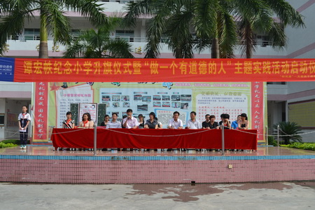譚宏帙紀(jì)念小學(xué)開展“做一個有道德的人”主題實踐活動啟動儀式。長沙中心學(xué)校領(lǐng)導(dǎo)、長沙各小學(xué)政工領(lǐng)導(dǎo)、全體輔導(dǎo)員以及師生共2700多人出席了儀式。 啟動儀式上,譚宏帙紀(jì)念小學(xué)副校長潘永炎作了動員講話,少先隊大隊長宣讀了倡議書,少先隊輔導(dǎo)員介紹了系列活動的安排,并帶領(lǐng)全體隊員宣誓——我承諾:做一個有道德的人。 該教育實踐系列活動根據(jù)江門市文明辦和開平市文明辦的部署要求,融合“小手牽大手,共建文明城”、“文明行車,禮讓行人”、節(jié)約教育等主題,通過主題隊會、“美德校園”、感恩父母親情體驗、志愿服務(wù)、征文比賽、美德家庭評比等系列活動,讓學(xué)生在潛移默化中增強(qiáng)道德意識,養(yǎng)成良好行為習(xí)慣,培養(yǎng)學(xué)生成為一個有道德的人。啟動儀式后,長沙各中小學(xué)陸續(xù)動員和組織全體師生廣泛參與主題教育實踐活動。