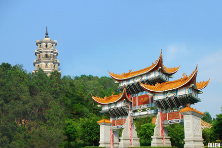 開元塔,是開平市長沙街道的一個著名文化旅游景點。1999年,開平市委、市政府將其納入建設“文明僑鄉(xiāng),花園城市”的總體規(guī)劃。多年來,經(jīng)過開平市領導和一大批華僑華人同胞的努力,通過政府劃撥巨款和僑胞捐贈巨資,先后投入700多萬元,對這兩座文物建筑進行了修葺和整固,令其煥然一新,又在金章閣內(nèi)增設了孔子大型銅塑像,還在馬山興建了園林、入口牌樓、上山石級、風亭、碑廊、名人廊、綠化區(qū)、停車場等旅游景觀和設施,建成了一座占地2萬平方米的嶄新的開元塔紀念公園,使其成為了開平花園城市的又一個集紀念、游樂為一體的風光名勝旅游景點。 歷史開元 開元塔,位于長沙樓岡馬山。開元塔高7層,占地面積49.1平方米,始建于清乾隆16年(1751年),原名“文塥”塔。據(jù)《開平縣志》載,乾隆十六年(1751年),四川省南溪縣舉人葉秀重到開平任知縣。葉認為馬山是開平的門戶,倡議在山頂上建一座5層高的“文筆”,以振興開平的人才。“文筆”建成后不久,開平果然出了10多個舉人。 文筆塔建成后,開平科舉小有嶄獲,但仍無大的建樹。據(jù)民間傳說,1843年,縣令張幫泰(江西吉水人)認為開平之所以未出名人,主要是文筆塔太矮。因此,張縣令召集工匠將“文筆”加高兩層,使之與蒼城學宮的地階相齊,構成鳳凰展翅飛天之勢。據(jù)縣志記載,張縣令還將文筆塔底層封閉,并規(guī)定:不出狀元就不能開塔底的門。文筆塔擴建期間,已經(jīng)苦讀十年寒窗的開平赤坎聯(lián)塘東溪村人司徒煦于道光癸卯科年間欽點傳臚翰林院庶吉士(即殿試第四名),為開平的科舉史開創(chuàng)了新局面,因此“文筆”便改名為開元塔。但由于開平始終沒有出過狀元,故該塔塔門一直不曾開啟,封閉至今。塔里面有沒有藏東西?藏了些什么?則成了一個謎。 1946年,樓岡人吳尚志任開平縣長,倡議重修開元塔和金章閣,使其恢復舊觀。這一倡議,得到當?shù)厝藗兊闹С趾秃M鈨S胞的囊助,終于把它修復。但又經(jīng)歷了數(shù)十多個春秋,一次雷雨大作,塔頂?shù)乃x“銅葫蘆”被失落而散失。1984年文物普查時,得知被雷電擊落的塔頂“銅葫蘆”為當?shù)厝罕娛盎厥詹兀阏骷乜h保管(現(xiàn)藏于縣華僑博物館)希望有朝一日重修此塔時,持“銅葫蘆”重置塔頂,使其重展當年的雄姿。1999年,開平市委、市政府已將其納入建設“文明僑鄉(xiāng),花園城市”的總體規(guī)劃,定為重點建設的10項“民心工程”之一。經(jīng)過開平市領導和吳榮治先生、譚錦濠先生等一大批華僑華人同胞的努力,通過政府劃撥巨款和華僑華人同胞捐贈巨資,先后投入700多萬元,對這兩座文物建筑進行了修葺和整固,令其煥然一新,又在金章閣內(nèi)增設了孔子大型銅塑像,還在馬山興建了園林、入口牌樓、上山石級、風亭、碑廊、名人廊、綠化區(qū)、停車場等旅游景觀和設施,建成了一座占地2萬平方米的嶄新的開元塔紀念公園,使其成為了開平花園城市的又一個集紀念、游樂為一體的風光名勝旅游景點。 如今,開元塔和金章閣巍然屹立在馬山之巔,“圣人”孔子的金身塑像坐立殿堂之中,面對川流奔騰不息的蒼江。紀念公園游人如鯽,不僅成為市民和外地游客瞻仰“南國古邑”風貌的著名觀光景點,而且成為了激勵僑鄉(xiāng)民眾和游人奮發(fā)拼搏,不斷開啟科學文化知識大門,攀登世界先進文化高峰的力量之源!