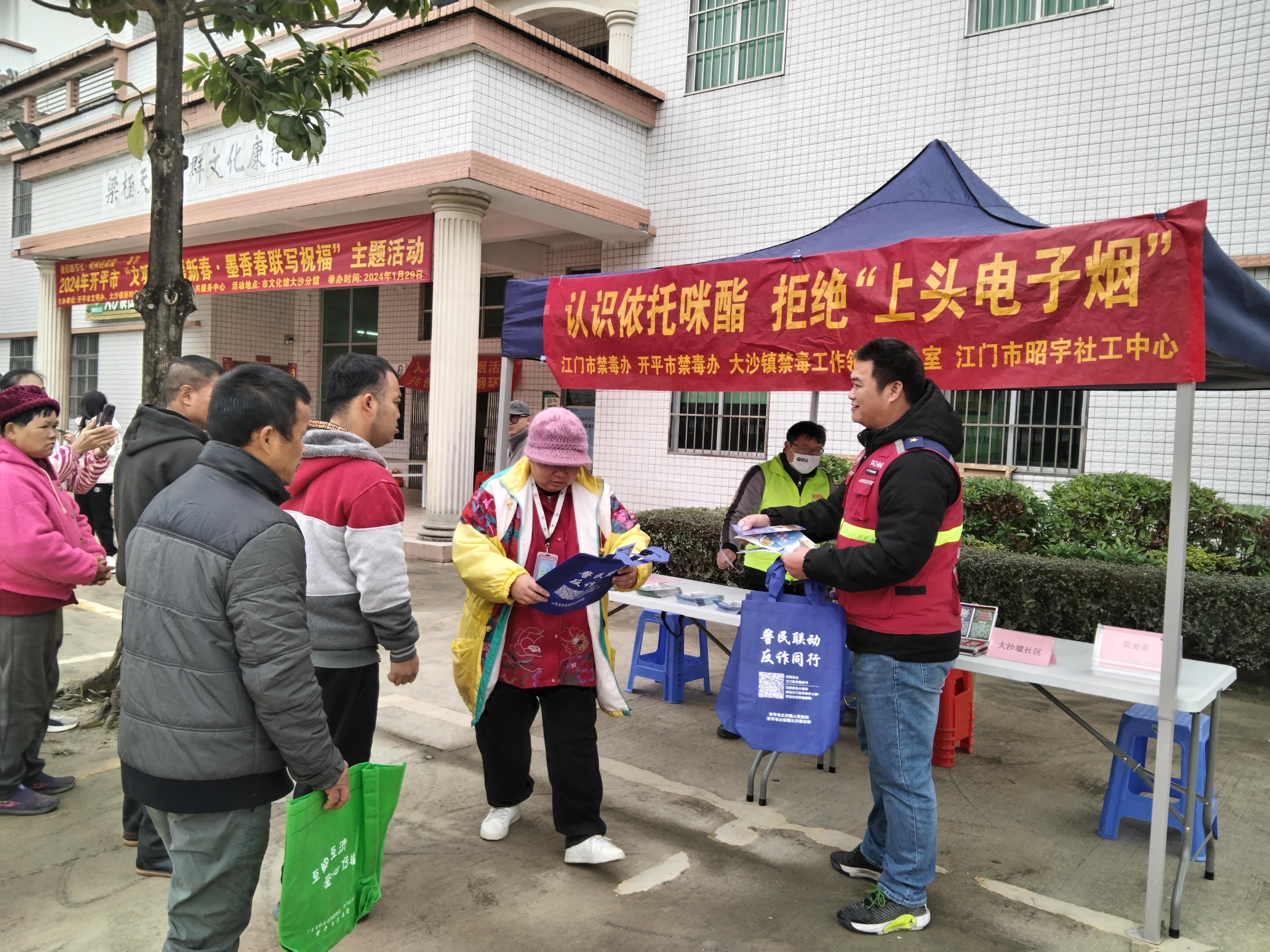 為持續(xù)推進(jìn)禁毒、反邪教、掃黑除惡等宣傳工作深入,努力增強(qiáng)廣大人民群眾參與禁毒、反對(duì)邪教的意識(shí),提高識(shí)毒防毒、認(rèn)清邪教本質(zhì)的能力,使禁毒、反邪教、掃黑除惡相關(guān)知識(shí)深入人心,大沙鎮(zhèn)以春節(jié)為契機(jī)在“寫春聯(lián)、送祝?!钡幕顒?dòng)和人流量大的景點(diǎn)門口開展禁毒、反邪教、掃黑除惡等宣傳活動(dòng)。
