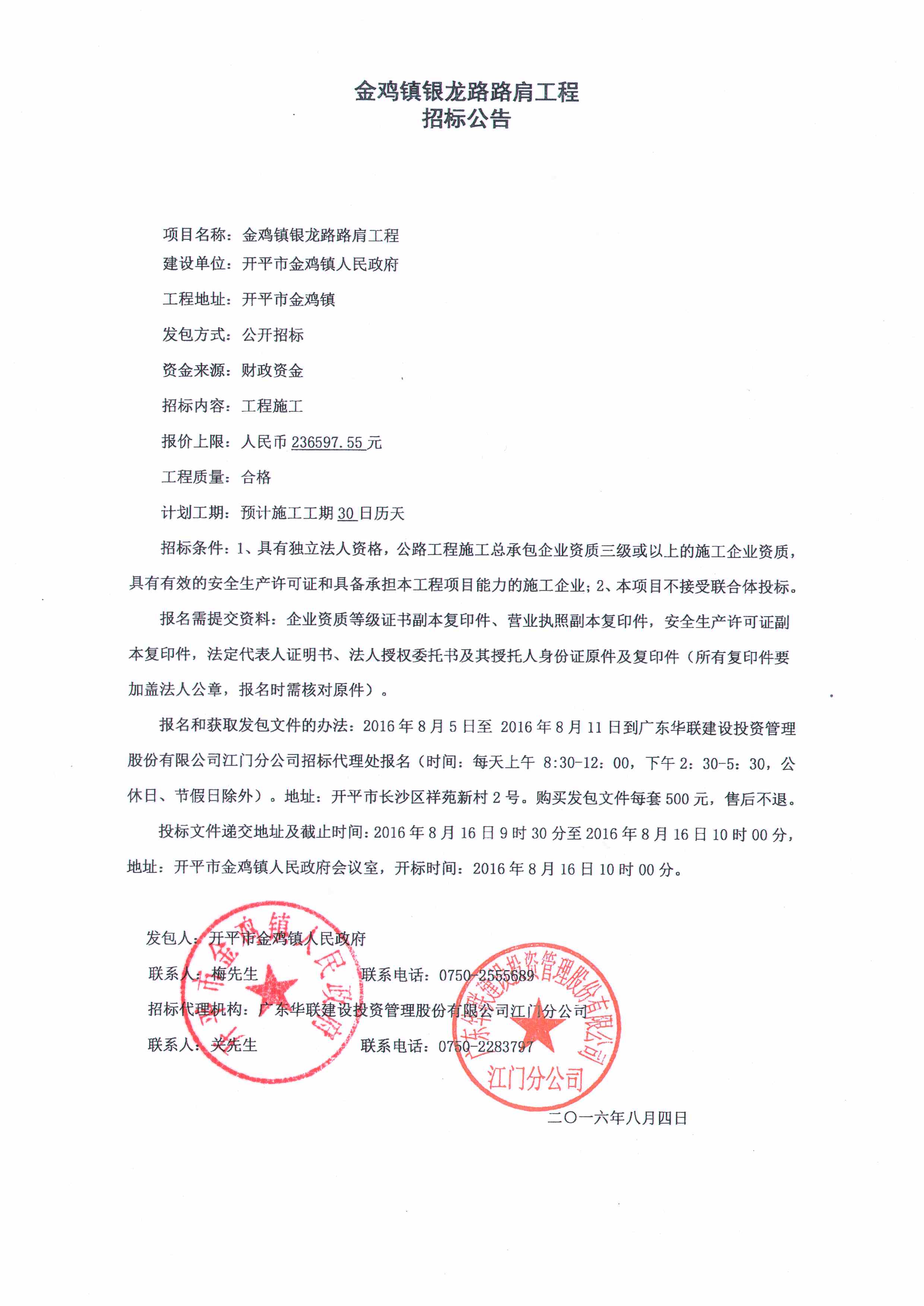 金雞鎮(zhèn)銀龍路路肩工程招標(biāo)公告