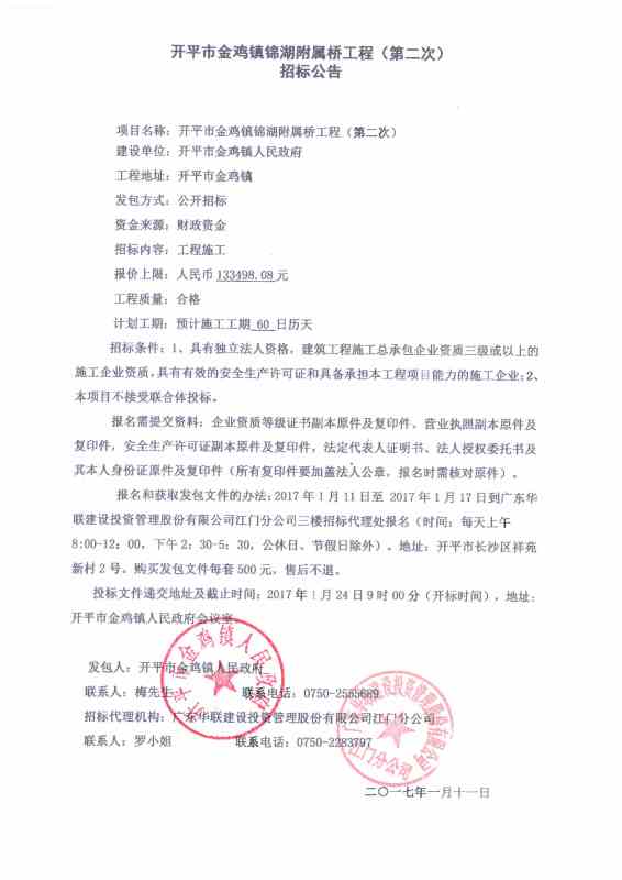 開平市金雞鎮(zhèn)錦湖附屬橋工程(第二次)