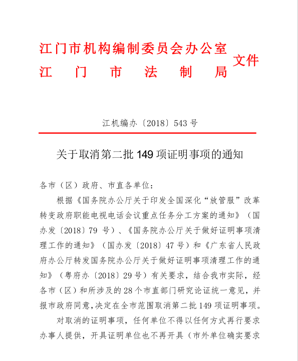 附件1附件:江門市取消的證明事項目錄(第二批,149項).xls