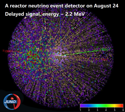 圖4. JUNO探測(cè)到的一個(gè)反應(yīng)堆中微子事例
