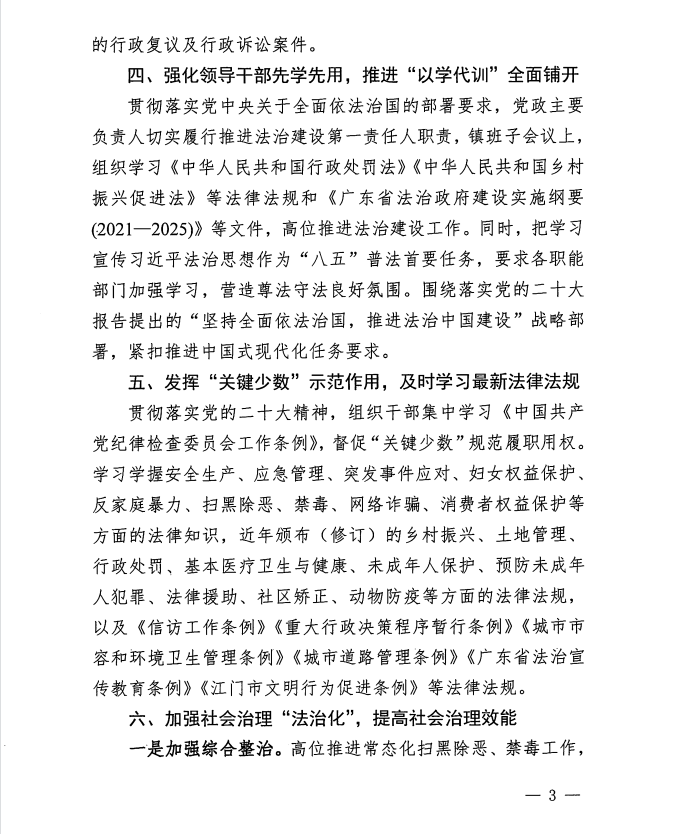 開(kāi)平市金雞鎮(zhèn)2022年法治政府建設(shè)年度報(bào)告