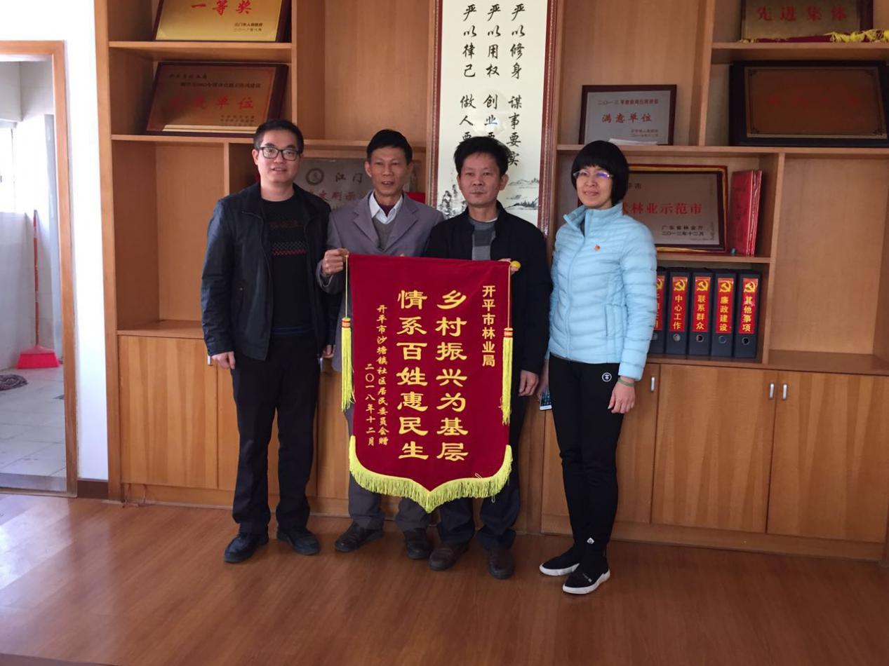 鄉(xiāng)村振興為基層、情系百姓惠民生 ——市林業(yè)局“送苗下鄉(xiāng)”助力美麗鄉(xiāng)村建設(shè),沙塘鎮(zhèn)社區(qū)居委會贈送錦旗表謝意 2019年1月24日上午,沙塘鎮(zhèn)政府分管領(lǐng)導(dǎo)和農(nóng)辦及鎮(zhèn)社區(qū)居委會有關(guān)同志一行3人將一面印有“鄉(xiāng)村振興為基層、情系百姓惠民生”字樣的鮮紅錦旗送到我局,對我局開展“送苗下鄉(xiāng)”活動,大力支持該鎮(zhèn)建設(shè)生態(tài)居宜鄉(xiāng)村表示由衷的感謝。我局馮岸良副局長和李雪清紀檢組長接收了錦旗。 馮岸良副局長表示,收到基層贈送的錦旗,林業(yè)部門倍感到自身的責(zé)任,也將激發(fā)全體林業(yè)干部職工以高度的政治責(zé)任感和務(wù)實的工作作風(fēng),極探索綠色發(fā)展的長效機制,著力改善全市生態(tài)宜居環(huán)境,為扎實推進新一輪綠化開平作出更大貢獻。同時希望村民們加強苗木日常管護,確保植樹成效,林業(yè)部門將提供技術(shù)指導(dǎo),共同鞏固綠化美化建設(shè)成果。