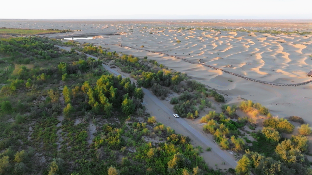 2023年6月6日,習(xí)近平總書(shū)記在內(nèi)蒙古自治區(qū)巴彥淖爾市主持召開(kāi)加強(qiáng)荒漠化綜合防治和推進(jìn)“三北”等重點(diǎn)生態(tài)工程建設(shè)座談會(huì)并發(fā)表重要講話,發(fā)出了堅(jiān)決打好“三北”工程攻堅(jiān)戰(zhàn)、努力創(chuàng)造新時(shí)代防沙治沙新奇跡的偉大號(hào)召。 這一歷史時(shí)刻值得永久銘記,這一戰(zhàn)略決策具有重大意義。它不僅為加快構(gòu)筑祖國(guó)北方生態(tài)安全屏障指引方向、凝聚力量,也開(kāi)啟了荒漠化綜合防治和“三北”工程建設(shè)新紀(jì)元,推進(jìn)科學(xué)防沙治沙步入新階段,成為新時(shí)代生態(tài)文明建設(shè)又一新的坐標(biāo),在人與自然和諧共生的現(xiàn)代化進(jìn)程中閃閃發(fā)亮。 攻堅(jiān)號(hào)令發(fā)出,沙海鏖戰(zhàn)拉開(kāi)。以防沙治沙為主攻方向,全面打響黃河“幾字彎”攻堅(jiān)戰(zhàn)、科爾沁和渾善達(dá)克沙地殲滅戰(zhàn)、河西走廊-塔克拉瑪干沙漠邊緣阻擊戰(zhàn)三大標(biāo)志性戰(zhàn)役。兩年來(lái),各戰(zhàn)役區(qū)集中資源和力量,全力治沙攻堅(jiān),推動(dòng)“三北”工程攻堅(jiān)戰(zhàn)取得了重大階段性成效。 河西走廊-塔克拉瑪干沙漠邊緣阻擊戰(zhàn),加強(qiáng)退化林和退化草原修復(fù),確保沙源不擴(kuò)散 新疆生產(chǎn)建設(shè)兵團(tuán)林草局生態(tài)處供圖 在三北大地,防沙治沙馳而不息,攻堅(jiān)行動(dòng)縱深推進(jìn),綠進(jìn)沙退的新奇跡不斷創(chuàng)造,綠富同興的新篇章接續(xù)譜寫(xiě)。 一 打好“三北”工程攻堅(jiān)戰(zhàn),綠色長(zhǎng)城持續(xù)得到鞏固延展,祖國(guó)北疆綠色生態(tài)屏障構(gòu)筑得更加牢固。 “三北”工程被譽(yù)為綠色長(zhǎng)城。這個(gè)綠色長(zhǎng)城,橫亙北方萬(wàn)里疆域,以保護(hù)修復(fù)森林草原濕地沙地,來(lái)抵御風(fēng)沙、涵水護(hù)土、護(hù)農(nóng)促牧,成為守護(hù)祖國(guó)北疆國(guó)土生態(tài)安全的綠色屏障和維系中華民族永續(xù)發(fā)展的生態(tài)根基。 加強(qiáng)荒漠化綜合防治,深入推進(jìn)“三北”等重點(diǎn)生態(tài)工程建設(shè),事關(guān)我國(guó)生態(tài)安全、事關(guān)強(qiáng)國(guó)建設(shè)、事關(guān)中華民族永續(xù)發(fā)展。進(jìn)入新時(shí)代,我們黨把實(shí)施“三北”工程作為國(guó)家重大戰(zhàn)略,充分表明“三北”工程在黨和國(guó)家工作全局中的戰(zhàn)略地位更加重要、戰(zhàn)略價(jià)值更加凸顯。各地把打好“三北”工程攻堅(jiān)戰(zhàn),作為推進(jìn)強(qiáng)國(guó)建設(shè)和民族復(fù)興的生動(dòng)實(shí)踐,作為建設(shè)生態(tài)文明和美麗中國(guó)的有力舉措。 “三北”工程開(kāi)啟了我國(guó)大規(guī)模治理風(fēng)沙、改善生態(tài)的先河,成為生態(tài)文明建設(shè)的標(biāo)志性工程,也成為全球生態(tài)治理的典范。經(jīng)過(guò)40多年工程建設(shè),工程區(qū)森林覆蓋率由5.05%增長(zhǎng)到13.84%,45%以上可治理沙化土地得到初步治理,61%的水土流失得到有效控制,4.5億畝農(nóng)田得到有效庇護(hù)。 當(dāng)前“三北”工程建設(shè)進(jìn)入攻堅(jiān)階段,正在集中打好三大標(biāo)志性戰(zhàn)役。這三大戰(zhàn)役區(qū)是防沙治沙的主戰(zhàn)場(chǎng),是北方生態(tài)安全屏障的重要脊梁。必須錨定目標(biāo)、真抓實(shí)干,以打好打贏三大標(biāo)志性戰(zhàn)役帶動(dòng)“三北”工程攻堅(jiān)戰(zhàn)取得全面勝利。 打好“三北”工程攻堅(jiān)戰(zhàn),必須深入學(xué)習(xí)領(lǐng)會(huì)習(xí)近平總書(shū)記重要講話和重要指示批示精神,認(rèn)真貫徹落實(shí)黨中央重大決策部署,以更大力度、更實(shí)舉措推動(dòng)工程建設(shè)取得新的重要成果。到 2027年底前,爭(zhēng)取完成“三北”工程六期規(guī)劃70%以上的任務(wù),三大標(biāo)志性戰(zhàn)役主體任務(wù)基本完成;到2030年,爭(zhēng)取全面完成“三北”工程六期規(guī)劃任務(wù),三大標(biāo)志性戰(zhàn)役取得更明顯成效。 打好打贏“三北”工程攻堅(jiān)戰(zhàn),讓更多的沙海變林海、荒漠變綠洲,把祖國(guó)北疆綠色長(zhǎng)城構(gòu)筑得更加牢固,把美麗中國(guó)的綠色底色打造得更加厚重。 二 打好“三北”工程攻堅(jiān)戰(zhàn),推進(jìn)荒漠化綜合防治,必須踐行科學(xué)理念,講究科學(xué)方法,依靠科技力量,走科學(xué)綠化和科學(xué)治沙新路子。 在治理理念上,堅(jiān)持“兩山”轉(zhuǎn)化、“三綠”并舉、“四庫(kù)”聯(lián)動(dòng),促進(jìn)提質(zhì)興業(yè)利民。堅(jiān)持科學(xué)、生態(tài)、節(jié)儉的治理理念,落實(shí)生態(tài)優(yōu)先、綠色發(fā)展的要求,因地制宜、適地適樹(shù)、以水定綠,宜林則林、宜草則草、宜荒則荒,造管并舉、保護(hù)修復(fù)并重,確保種一棵活一棵、治一片成一片。 在治理方向上,堅(jiān)持山水林田湖草沙一體化保護(hù)和系統(tǒng)治理,統(tǒng)籌治沙、治水、治山全要素協(xié)調(diào)管理,精準(zhǔn)靶向施策,綜合系統(tǒng)施治,大力推進(jìn)綜合治理、系統(tǒng)治理,著力培育健康穩(wěn)定、功能完備的森林、草原、濕地、荒漠生態(tài)系統(tǒng)。 在治理布局上,堅(jiān)持規(guī)劃引領(lǐng)、因害設(shè)
