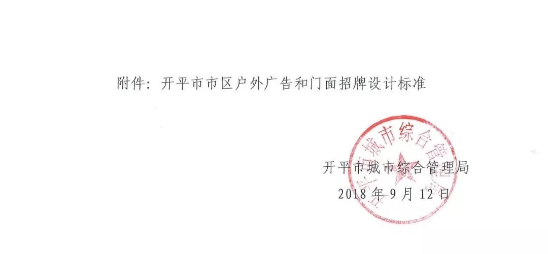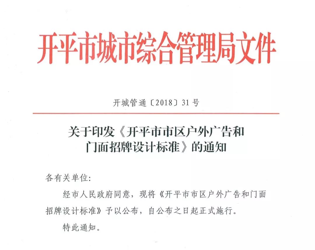 關(guān)于印發(fā)《開平市市區(qū)戶外廣告和門面招牌設(shè)計(jì)標(biāo)準(zhǔn)》的通知