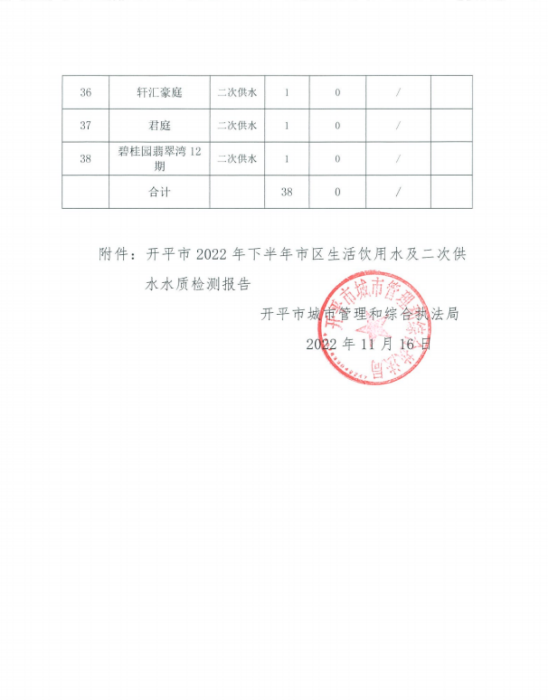 開平市2022年下半年市區(qū)生活飲用水及二次供水水質(zhì)檢測(cè)信息公示