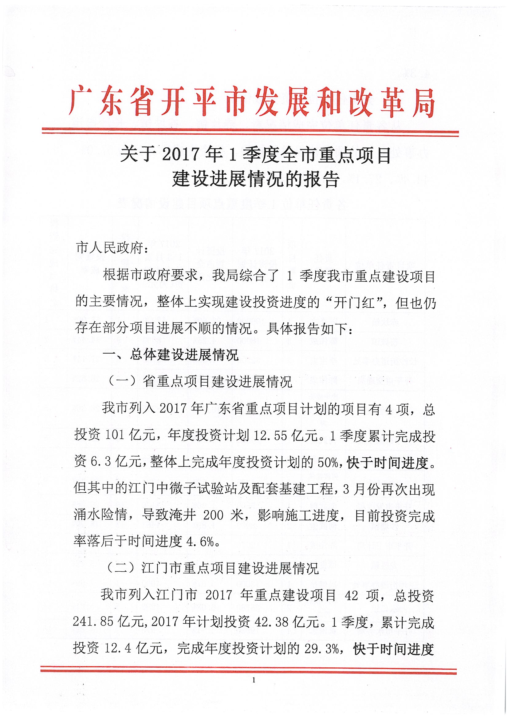 關(guān)于2017年1季度全市重點(diǎn)建設(shè)項(xiàng)目建設(shè)進(jìn)展情況的報(bào)告