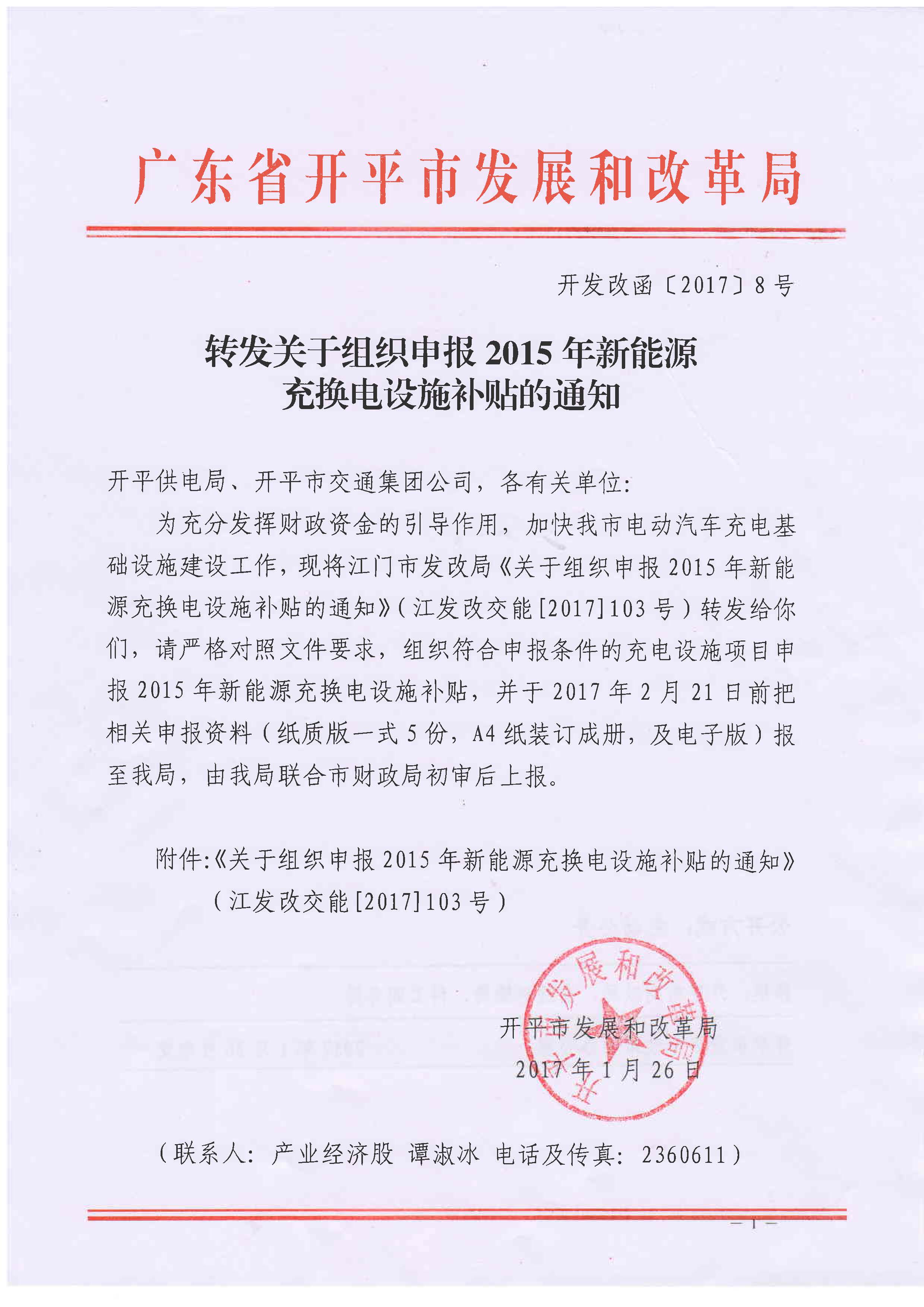 開發(fā)改函[2017]8號-關(guān)于組織申報2015年新能源充換電設(shè)施補貼的通知