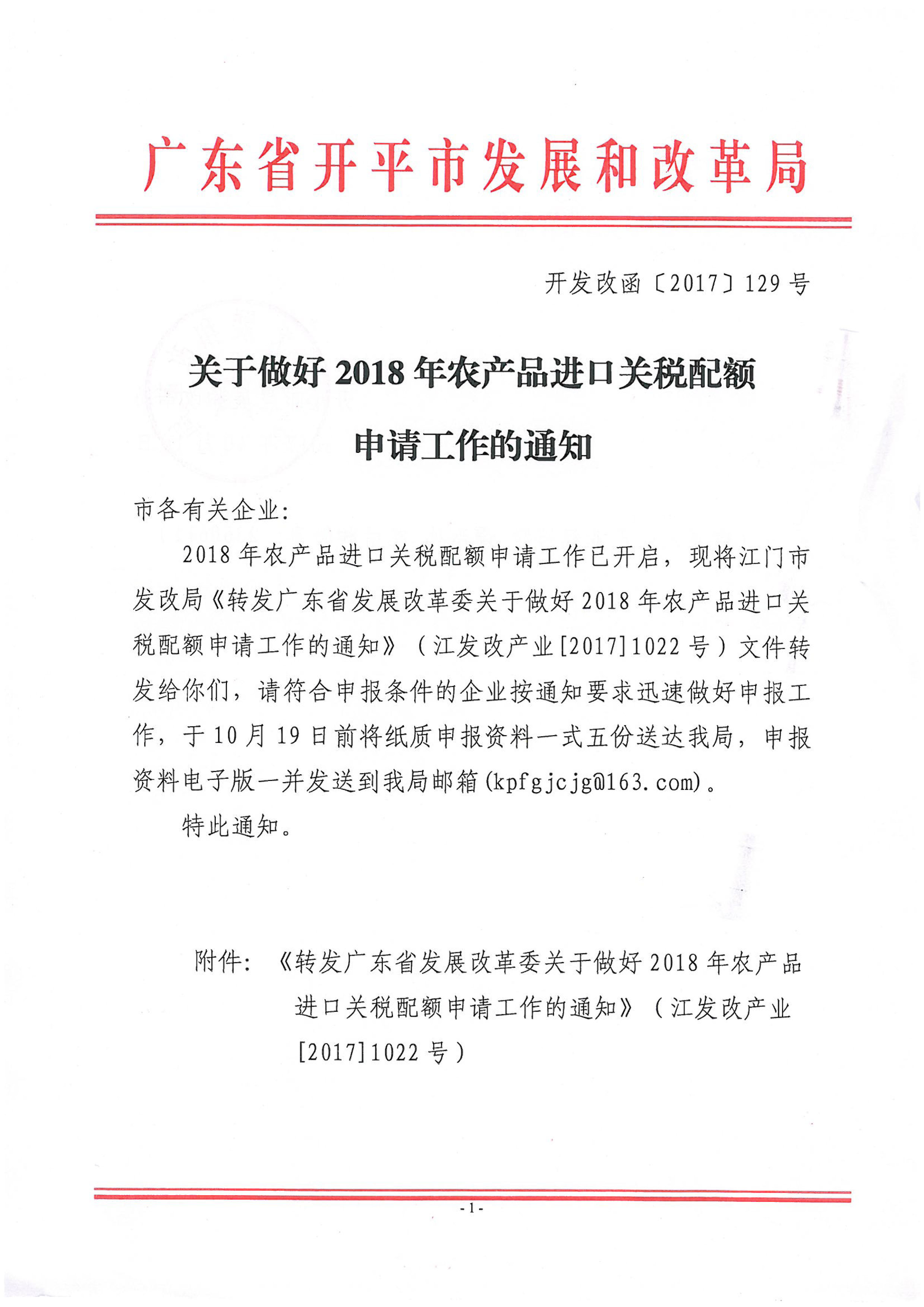 轉發(fā)廣東省發(fā)展改革委關于做好2018年農產品進口關稅配額申請工作的通知_1514468867925.pdf