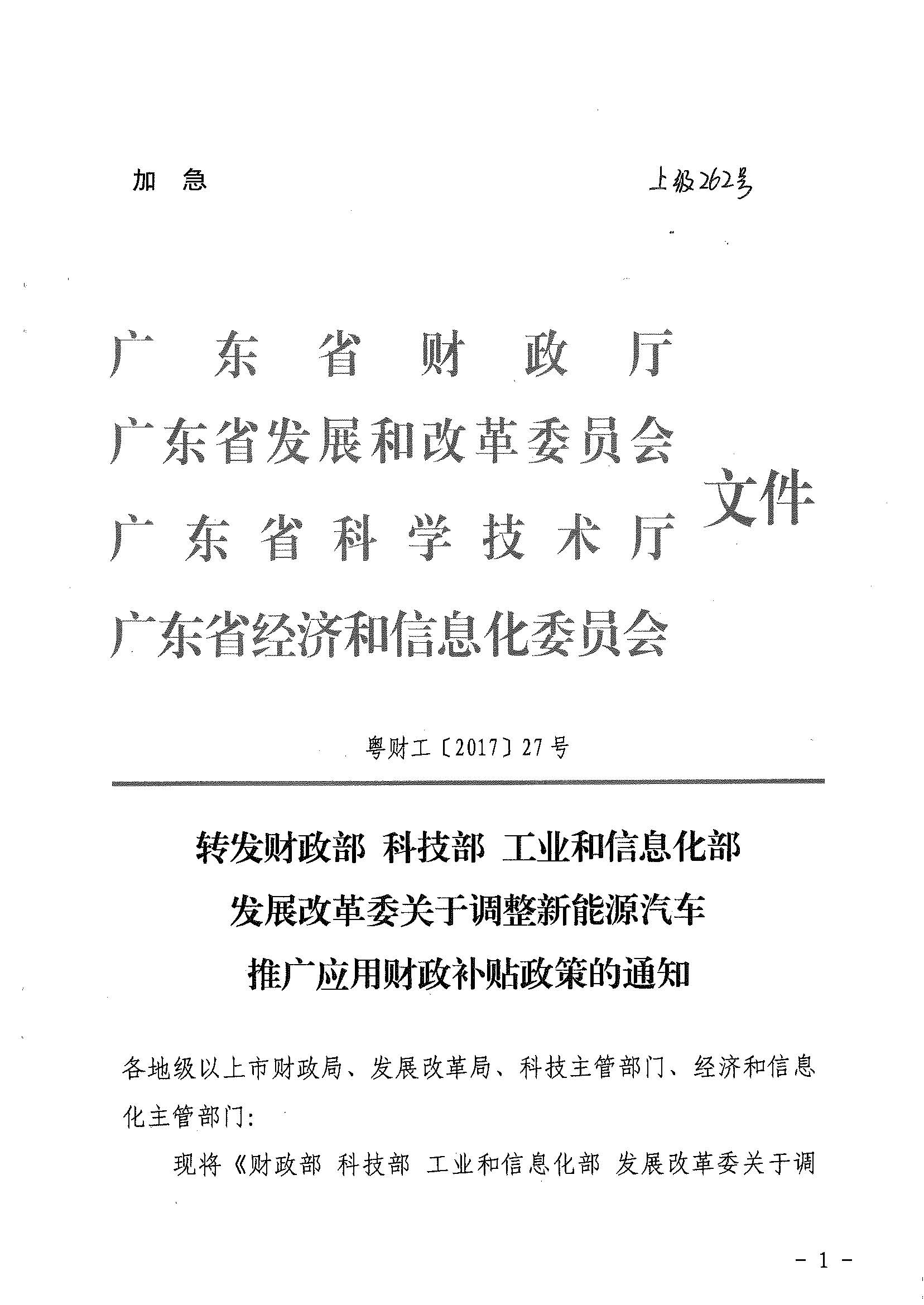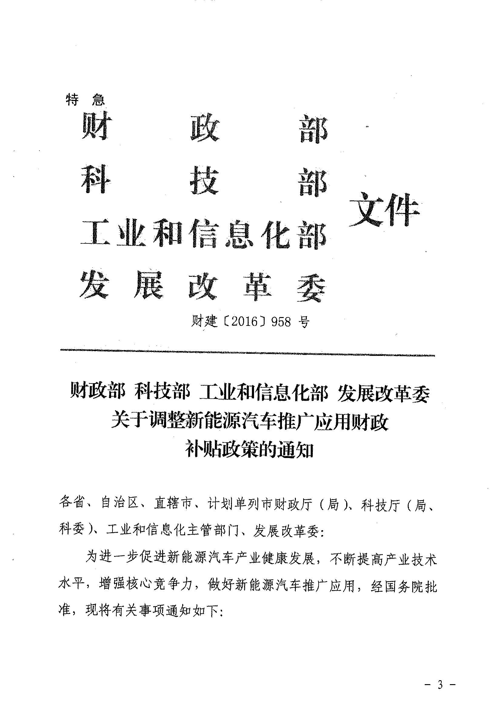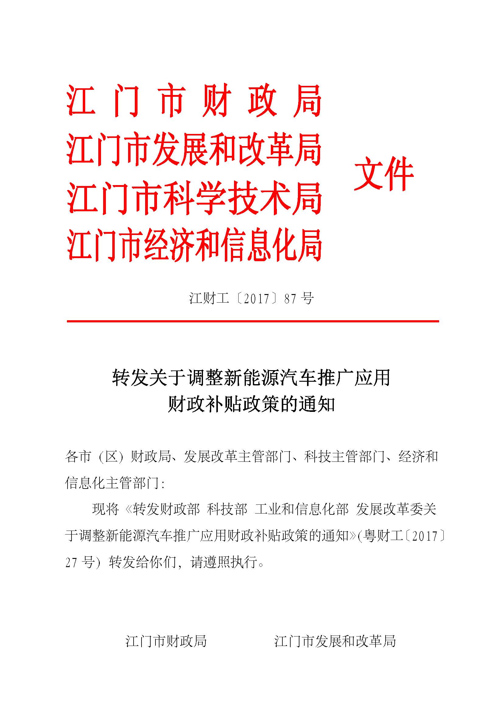 轉發(fā)關于調整新能源汽車推廣應用財政補貼政策的通知
