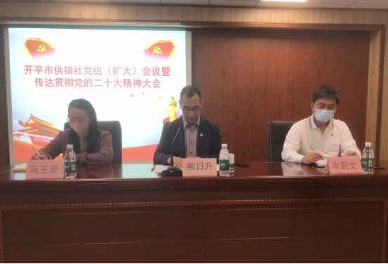 11月2日下午,市供銷社召開黨組(擴大)會議傳達貫徹黨的二十大精神,推動市供銷社學習貫徹工作走深走實。開平市供銷社黨組書記、主任熊日升主持并講話,市社機關全體干部職工、下屬單位相關負責人參加會議。 會議指出,黨的二十大是在全黨全國各族人民邁上全面建設社會主義現(xiàn)代化國家新征程、向第二個百年奮斗目標進軍的關鍵時刻召開的一次十分重要的大會。習近平總書記代表第十九屆中央委員會向大會作了題為《高舉中國特色社會主義偉大旗幟 為全面建設社會主義現(xiàn)代化國家而團結奮斗》的報告。大會選舉產生了新一屆中央委員會和中央紀律檢查委員會,通過了十九屆中央委員會報告決議、十九屆中央紀律檢查委員會工作報告決議、《中國共產黨章程(修正案)》決議,對凝聚和激勵全黨全軍全國各族人民高舉中國特色社會主義偉大旗幟、為全面建設社會主義現(xiàn)代化國家團結奮斗具有十分重大的政治意義、理論意義、戰(zhàn)略意義、實踐意義,取得了豐碩的政治成果、理論成果、戰(zhàn)略成果、制度成果、實踐成果。 會議強調,學習好、宣傳好、貫徹好黨的二十大精神,是當前和今后一個時期的重要政治任務。全社系統(tǒng)黨員干部職工要深刻領會黨的二十大精神的豐富內涵和精神實質,切實用以統(tǒng)一思想、統(tǒng)一意志、統(tǒng)一行動。聚焦“五個牢牢把握”的要求,深刻領會黨的二十大的主題,深刻領會過去5年工作和新時代10年偉大變革的重大意義,深刻領會習近平新時代中國特色社會主義思想的世界觀和方法論,深刻領會新時代新征程黨的使命任務,深刻領會全面建設社會主義現(xiàn)代化國家的戰(zhàn)略部署,深刻領會以偉大自我革命引領偉大社會革命的重大要求,深刻領會團結奮斗的時代要求,把報告的部署要求轉化為開平供銷實現(xiàn)高質量發(fā)展的工作思路和行動抓手,為我市經濟的高質量發(fā)展作出更大貢獻。 會議要求,全系統(tǒng)要緊密結合供銷工作實際,不折不扣抓好黨的二十大精神的貫徹落實。一是在學習上要“掀熱潮”。全社黨員干部充分認識學習宣傳貫徹黨的二十大精神的重大意義,通過黨組理論中心組學習會、“三會一課”、座談研討、輔導講座等多種形式,認認真真、原原本本、逐字逐句學習黨的二十大報告和黨章,掀起學習宣傳貫徹熱潮,確保黨員全覆蓋。二是在宣傳上要“全方位”。要通過市供銷聯(lián)社網站等開展連續(xù)宣傳解讀,組織機關黨員干部通過學習強國APP自學并撰寫學習心得體會,要組織黨員干部進企業(yè)、進社區(qū)開展宣傳宣講,使黨的二十大精神家喻戶曉。三是在落實上要“見真章”。要堅持以黨的二十大精神為引領,緊密結合省委、江門市委和開平市委的最新要求和部署,認真落實“疫情要防住、經濟要穩(wěn)住、發(fā)展要安全”的重要要求,高效統(tǒng)籌疫情防控和供銷發(fā)展,以實際行動推動黨的二十大精神在全系統(tǒng)的貫徹落實。