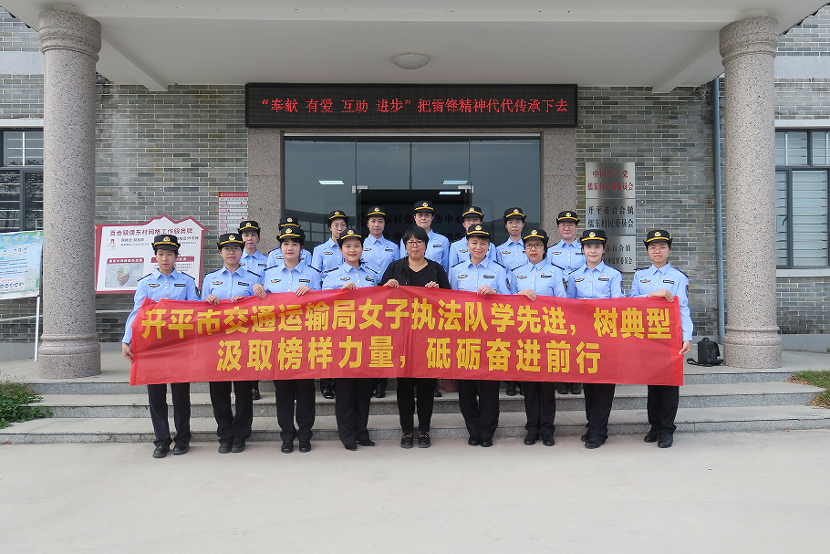 為發(fā)揮黨建引領(lǐng)作用,深化先進(jìn)典型引領(lǐng),開平市交通運(yùn)輸局女子執(zhí)法隊(duì)于以創(chuàng)建“巾幗文明崗”為契機(jī),組織全體女子執(zhí)法隊(duì)員先后到百合鎮(zhèn)鳳凰里周文雍故居及“江門市基層黨建示范村”百合鎮(zhèn)儒東村交流學(xué)習(xí)。