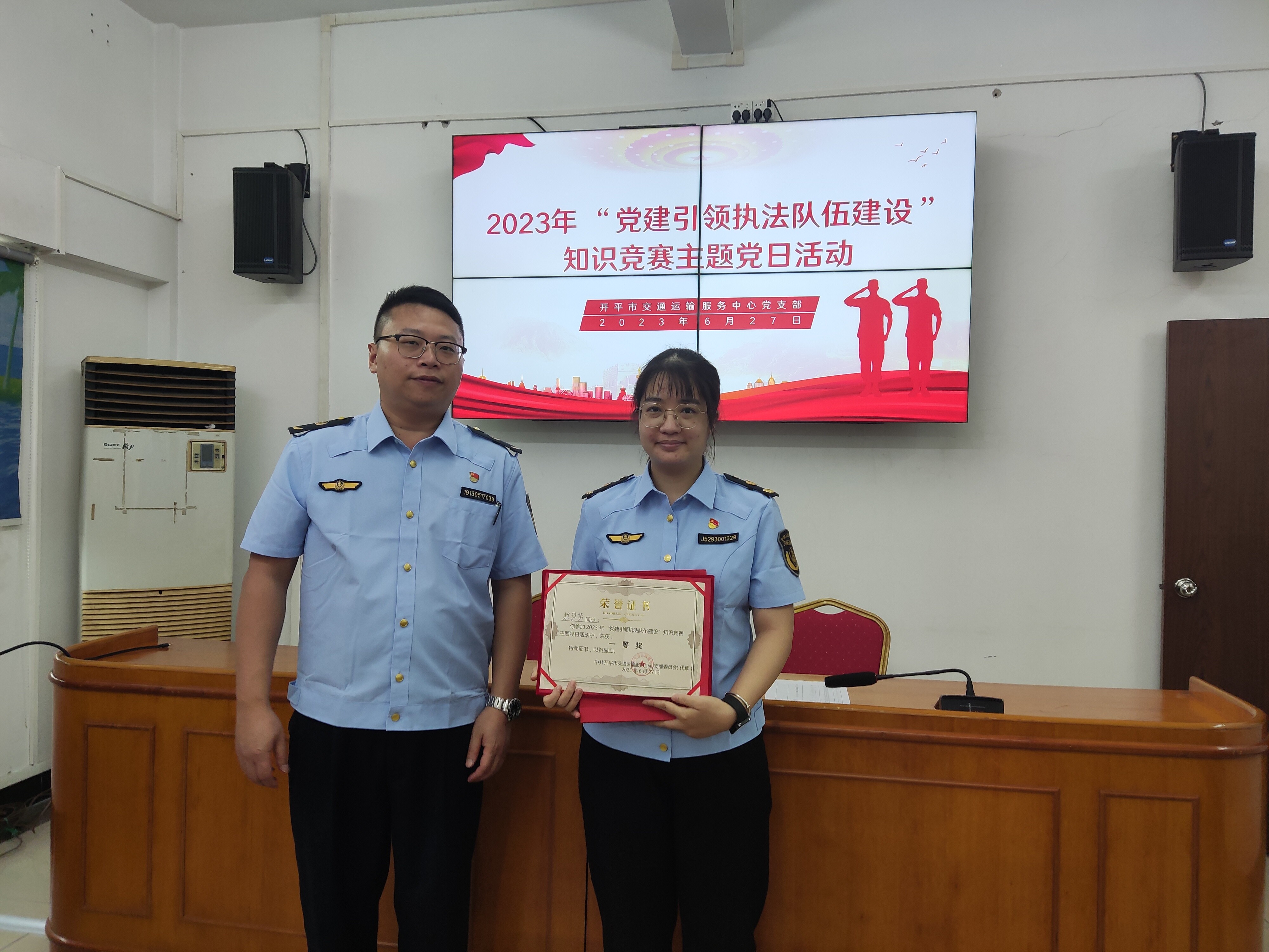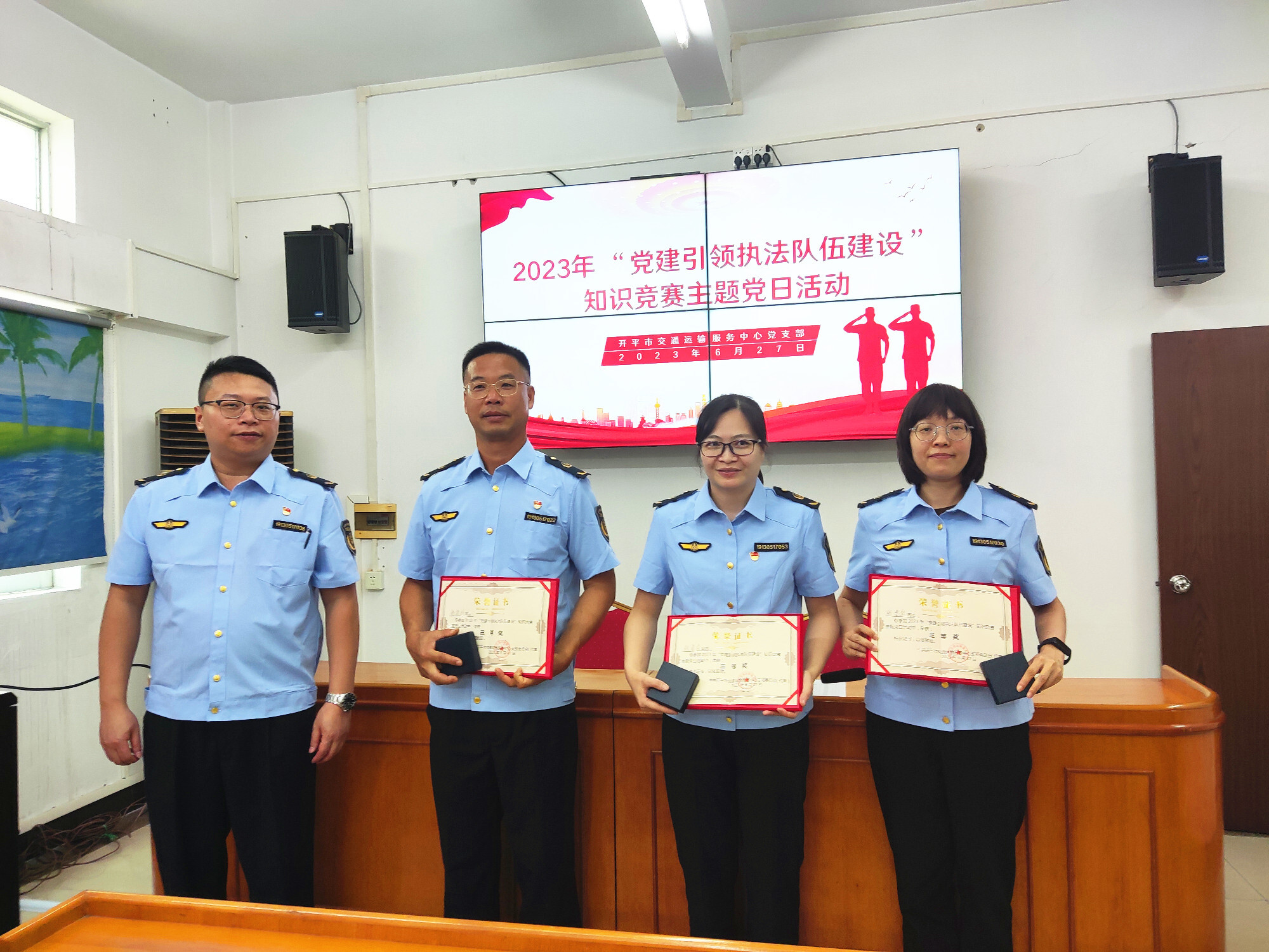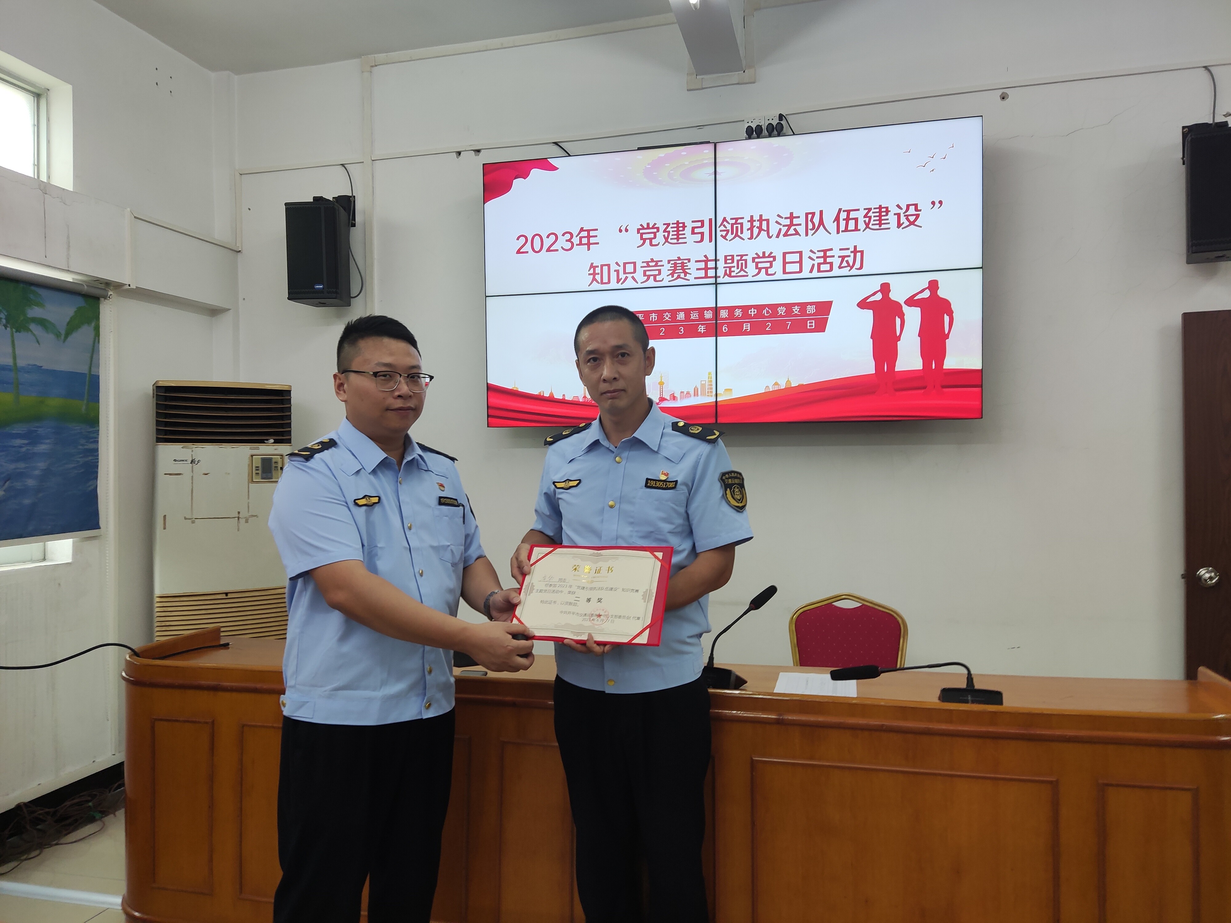 為認(rèn)真學(xué)習(xí)貫徹黨的二十大精神,深入學(xué)習(xí)貫徹習(xí)近平法治思想,進(jìn)一步發(fā)揮黨建引領(lǐng)作用,引導(dǎo)黨員夯實黨建基礎(chǔ)知識和交通運(yùn)輸執(zhí)法法規(guī),助力交通運(yùn)輸執(zhí)法隊伍建設(shè),市交通運(yùn)輸服務(wù)中心黨支部于6月27日組織支部黨員開展了“黨建引領(lǐng)執(zhí)法隊伍建設(shè)”知識競賽主題黨日活動。