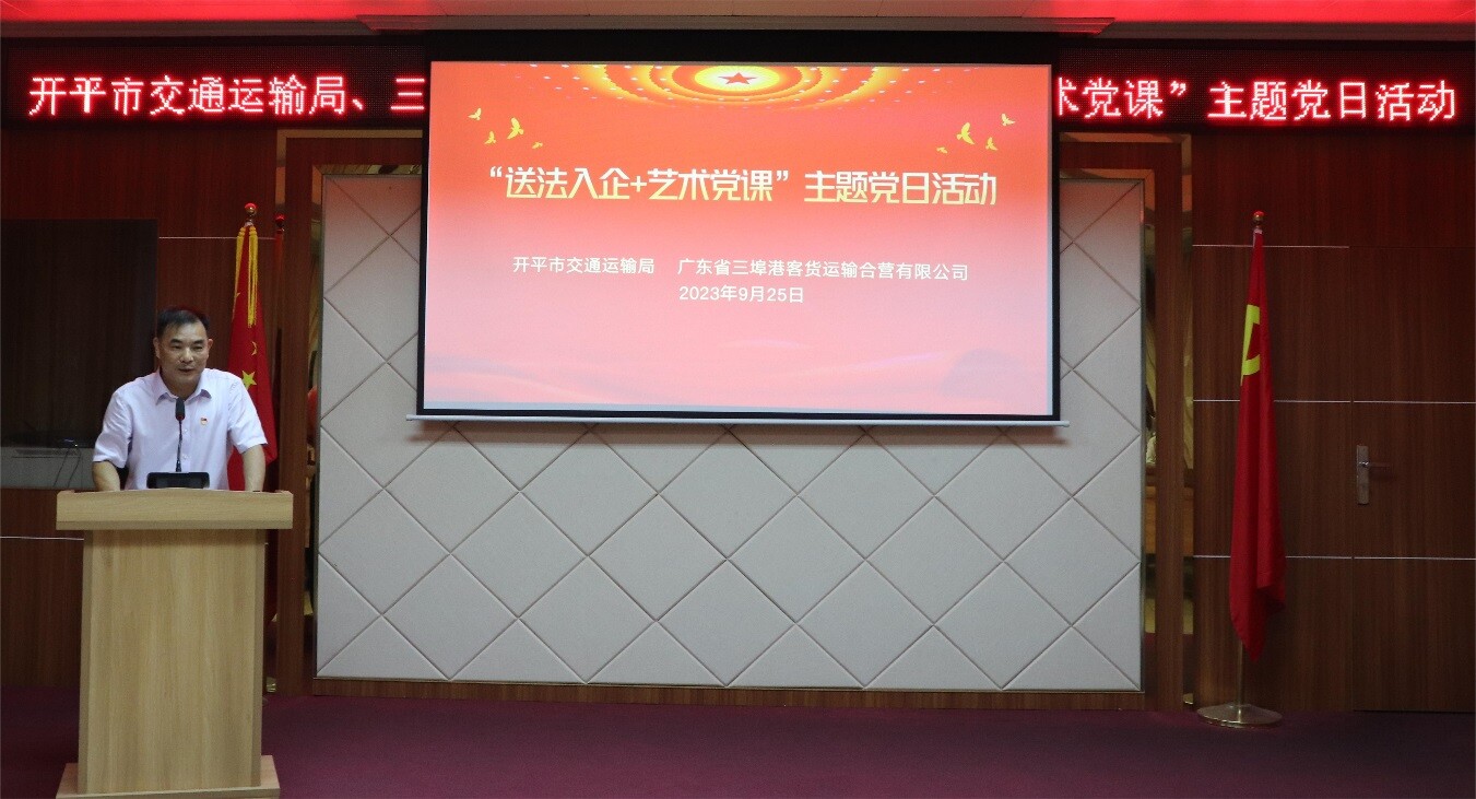 為慶祝中華人民共和國(guó)成立74周年,實(shí)現(xiàn)政企黨組織優(yōu)勢(shì)互補(bǔ),引導(dǎo)黨員干部努力在以學(xué)鑄魂、以學(xué)增智、以學(xué)正風(fēng)、以學(xué)促干方面取得實(shí)實(shí)在在的成效,促進(jìn)黨建與交通執(zhí)法工作相融合,激勵(lì)廣大交通女性立足崗位、勇?lián)姑?、奮力拼搏、建功立業(yè),為推動(dòng)開(kāi)平市交通運(yùn)輸高質(zhì)量發(fā)展貢獻(xiàn)巾幗智慧和力量。9月25日,市交通運(yùn)輸局聯(lián)合廣東省三埠港客貨運(yùn)輸合營(yíng)有限公司開(kāi)展“送法進(jìn)企+藝術(shù)黨課”主題黨日活動(dòng),活動(dòng)共70人參加。