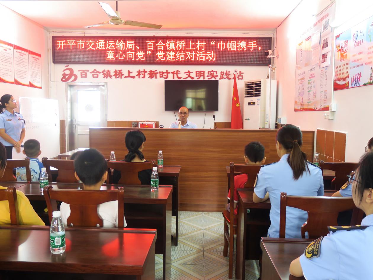 為深入學習貫徹黨的二十屆三中全會精神,全面推進鄉(xiāng)村振興,將黨的最新理論成果和關懷傳遞到廣大少年兒童的心中,7月30日,開平市交通運輸局“巾幗頭雁”市直導師駱妙嬋同志帶領“邑路芳華創(chuàng)新工作室”成員到百合鎮(zhèn)橋上村開展“巾幗攜手 童心向黨”黨建結對活動。橋上村黨員、家長和兒童共計30余人參加活動。