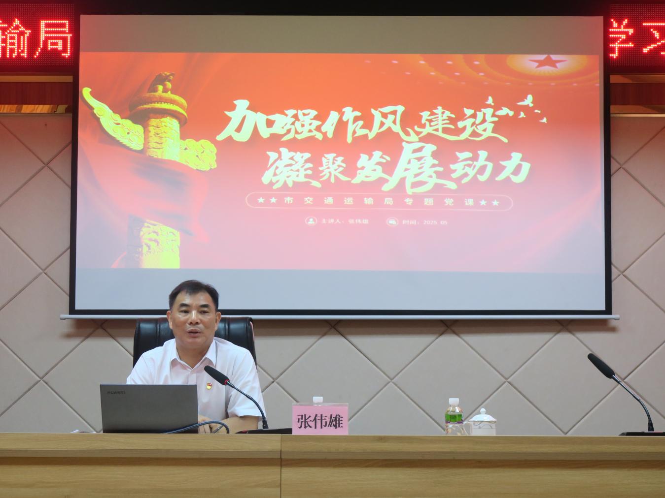 為深入學習貫徹中央八項規(guī)定精神,推動全局作風建設走深走實,5月30日,市交通運輸局開展深入貫徹中央八項規(guī)定精神學習教育專題黨課。市交通運輸局黨組書記、局長張偉雄同志為市交通運輸局機關黨支部、市交通運輸服務中心黨支部、市地方公路水運服務中心黨支部全體黨員以及市航運總公司黨總支部、四方黨建共建黨支部黨員代表作專題授課。