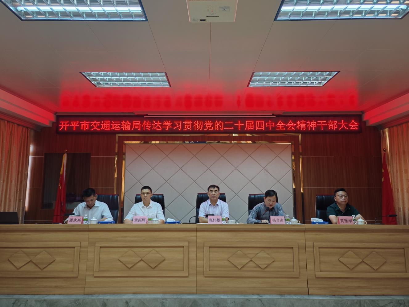 10月30日上午,開平市交通運(yùn)輸局召開傳達(dá)學(xué)習(xí)貫徹黨的二十屆四中全會精神干部大會,深入學(xué)習(xí)領(lǐng)會習(xí)近平總書記在黨的二十屆四中全會上的重要講話精神和全會精神,全面貫徹落實(shí)省、江門市、開平市委常委會及干部大會精神,研究部署全局貫徹落實(shí)舉措,動員全體干部職工迅速把思想和行動統(tǒng)一到全會精神上來,推動交通運(yùn)輸事業(yè)高質(zhì)量發(fā)展。局領(lǐng)導(dǎo)、機(jī)關(guān)各股室、大隊(duì)及直屬事業(yè)單位負(fù)責(zé)人參加會議。