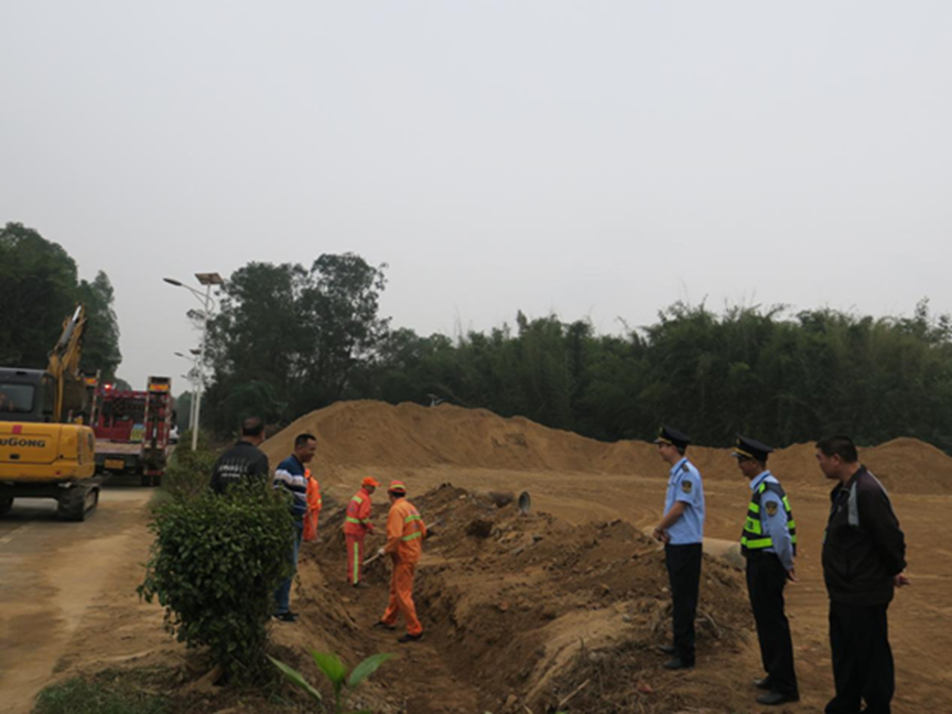 12月13日,市交通運(yùn)輸局路政管理人員在日常路政巡查工作中發(fā)現(xiàn)有當(dāng)事人在省道S534 K11+830M右側(cè)路段擅自增設(shè)平面交叉道口,該涉路施工行為導(dǎo)致公路排水溝阻塞、泥土污染路面,影響公路行車安全,特別是遇到雨水天氣,黃泥水沖出路面容易導(dǎo)致車輛打滑、行人摔倒,存在較大安全隱患,嚴(yán)重危及人民群眾的生命財(cái)產(chǎn)安全。路政管理人員當(dāng)場(chǎng)責(zé)令當(dāng)事人停止施工并展開調(diào)查取證,將情況向馬岡鎮(zhèn)政府通報(bào)。