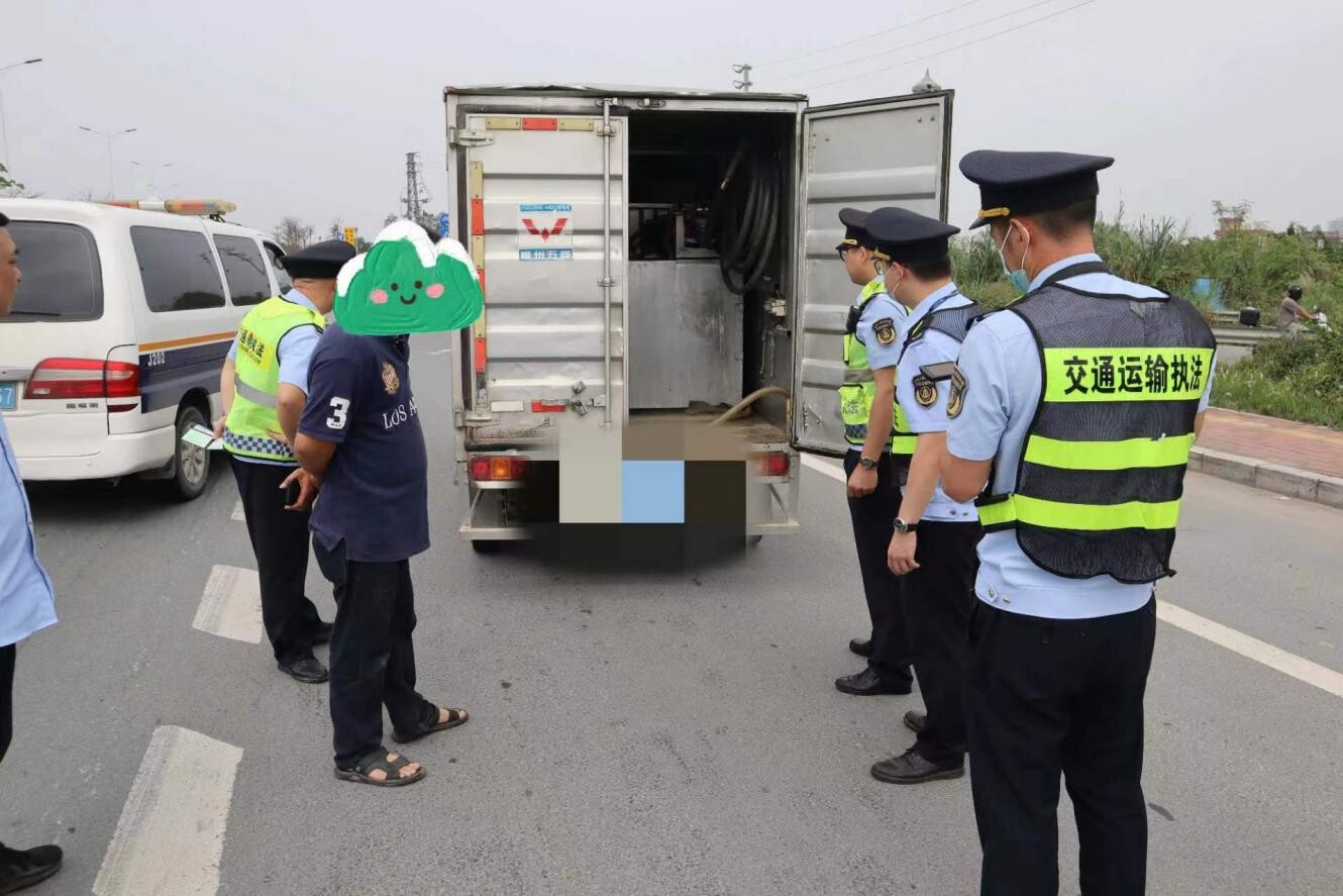 近期,開平市交通運(yùn)輸局執(zhí)法人員在環(huán)城公路巡查時(shí)發(fā)現(xiàn)一輛輕型廂式貨車形跡可疑,隨即上前對(duì)其檢查。經(jīng)檢查,發(fā)現(xiàn)粵J*****輕型廂式貨車的車廂內(nèi)加裝了加油槍、計(jì)量設(shè)備及固定式大型儲(chǔ)油罐一個(gè),儲(chǔ)油罐內(nèi)有柴油500升左右。由于該車司機(jī)司徒某某現(xiàn)場(chǎng)不能提供粵J*****輕型廂式貨車的危險(xiǎn)貨物道路運(yùn)輸證及其它有效證明,執(zhí)法人員依法現(xiàn)場(chǎng)暫扣該車輛。目前,交通執(zhí)法人員已積極協(xié)同涉案當(dāng)事人對(duì)剩余柴油進(jìn)行安全轉(zhuǎn)運(yùn),后續(xù)案件的處理工作在進(jìn)一步辦理中。