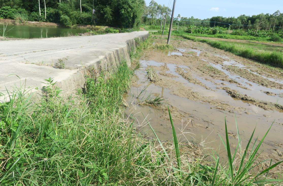 (西社村村口路路面與農(nóng)田的高度差約1米)