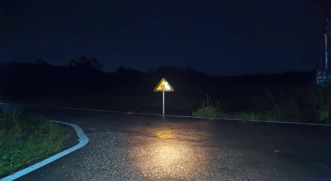 (增設(shè)反光型標線+慢行警示牌夜間效果)