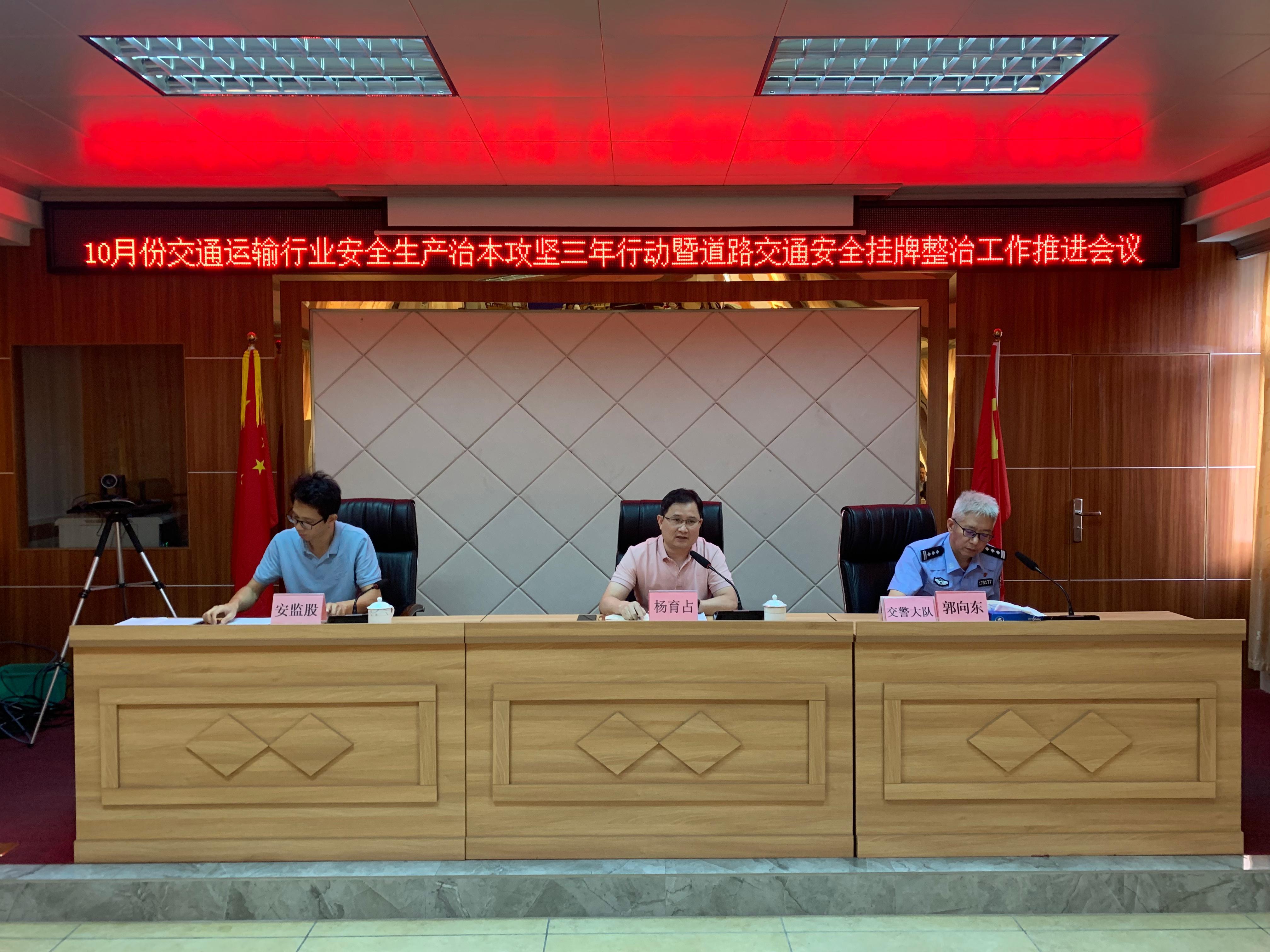 為進(jìn)一步統(tǒng)籌推進(jìn)我市交通運(yùn)輸行業(yè)道路交通安全掛牌整治工作、治本攻堅(jiān)三年行動(dòng)和消防安全工作,確保全市交通運(yùn)輸行業(yè)安全生產(chǎn)形勢(shì)持續(xù)穩(wěn)定,市交通運(yùn)輸局于10月22日組織召開10月份交通運(yùn)輸行業(yè)安全生產(chǎn)治本攻堅(jiān)三年行動(dòng)暨道路交通安全掛牌整治工作推進(jìn)會(huì)議。市交通運(yùn)輸局楊育占副局長,局職能股室、執(zhí)法大隊(duì)、直屬單位和市交警大隊(duì)以及各客運(yùn)企業(yè)(含網(wǎng)約車)、客運(yùn)站、城市公交企業(yè)、出租車企業(yè)、危險(xiǎn)貨物運(yùn)輸企業(yè)、10輛車以上的貨運(yùn)企業(yè)、在建交通工程項(xiàng)目、水上運(yùn)輸企業(yè)和港口碼頭企業(yè)等有關(guān)負(fù)責(zé)人共52人參加本次會(huì)議。