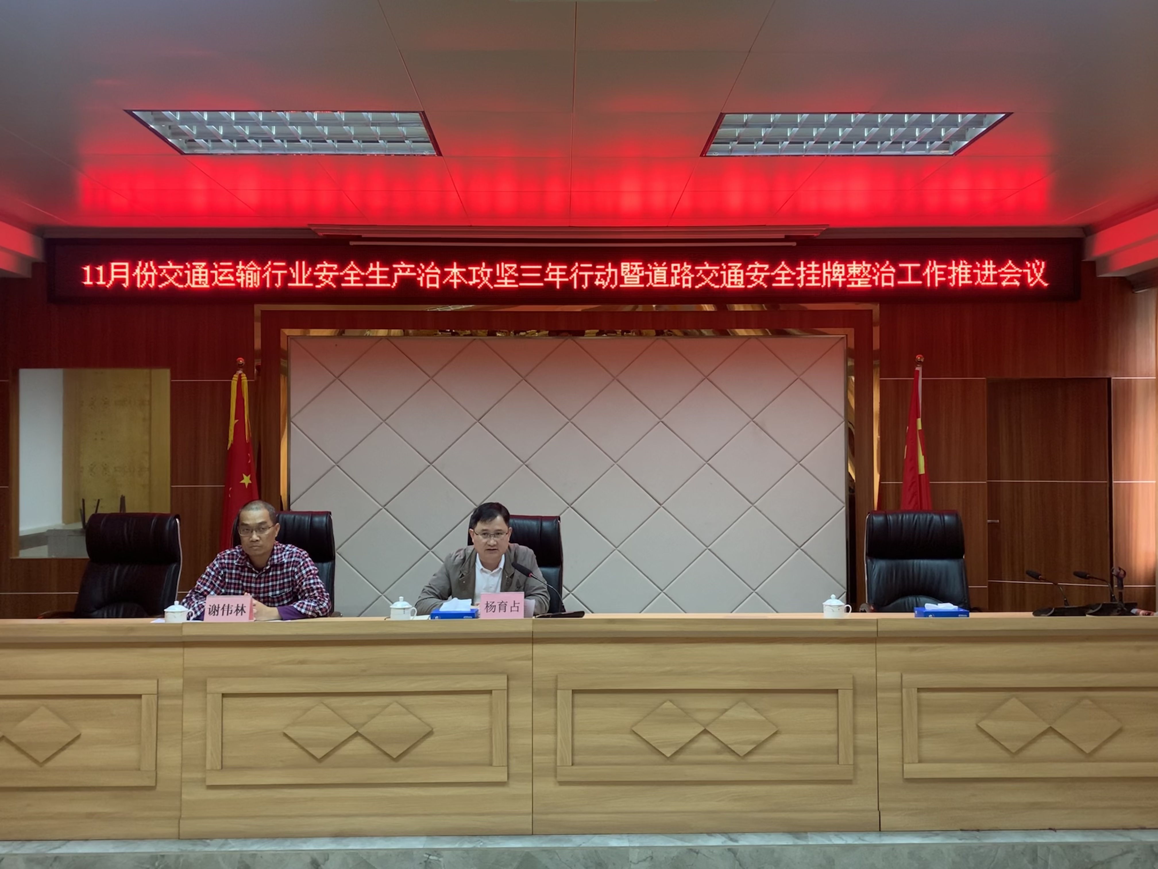 為進一步統(tǒng)籌推進我市交通運輸行業(yè)道路交通安全掛牌整治工作、治本攻堅三年行動和消防安全工作,確保全市交通運輸行業(yè)安全生產(chǎn)形勢持續(xù)穩(wěn)定,市交通運輸局于11月20日組織召開11月份交通運輸行業(yè)安全生產(chǎn)治本攻堅三年行動暨道路交通安全掛牌整治工作推進會議。市交通運輸局楊育占副局長、謝偉林三級主辦,局相關(guān)股室、各執(zhí)法大隊、直屬單位、市公安局交警大隊以及各客運企業(yè)(含網(wǎng)約車)、客運站、城市公交企業(yè)、出租車企業(yè)、危險貨物運輸企業(yè)、10輛車以上的貨運企業(yè)、在建交通工程項目、水上運輸企業(yè)和港口碼頭企業(yè)等有關(guān)負責(zé)人共52人參加本次會議。