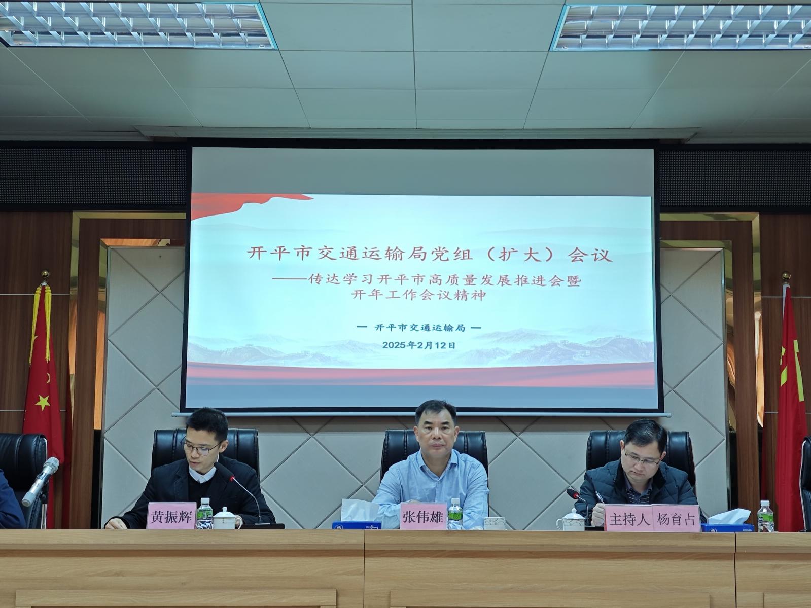 2025年2月12日,市交通運輸局召開黨組(擴大)會議,傳達學習中央經(jīng)濟工作會議、省委十三屆六次全會暨省委經(jīng)濟工作會議、全省高質(zhì)量發(fā)展大會、江門市委十四屆八次全會暨全市高質(zhì)量發(fā)展大會、開平市高質(zhì)量發(fā)展推進會暨開年工作會議、開平市委十四屆八次全體會議暨市委經(jīng)濟工作會議等會議精神,研究部署我局貫徹意見,并部署2025年的工作,動員市交通運輸局全體干部職工以全新的精神狀態(tài)大干、快干、苦干、實干,努力完成今年交通運輸各項工作任務,高質(zhì)量完成“十四五”規(guī)劃目標任務,聚焦推動交通運輸事業(yè)高質(zhì)量發(fā)展,助力開平高質(zhì)量發(fā)展藍圖變成“實景圖”。局黨組成員、協(xié)管領導,各股室(大隊)、直屬單位負責人以及全體公務員參加會議。