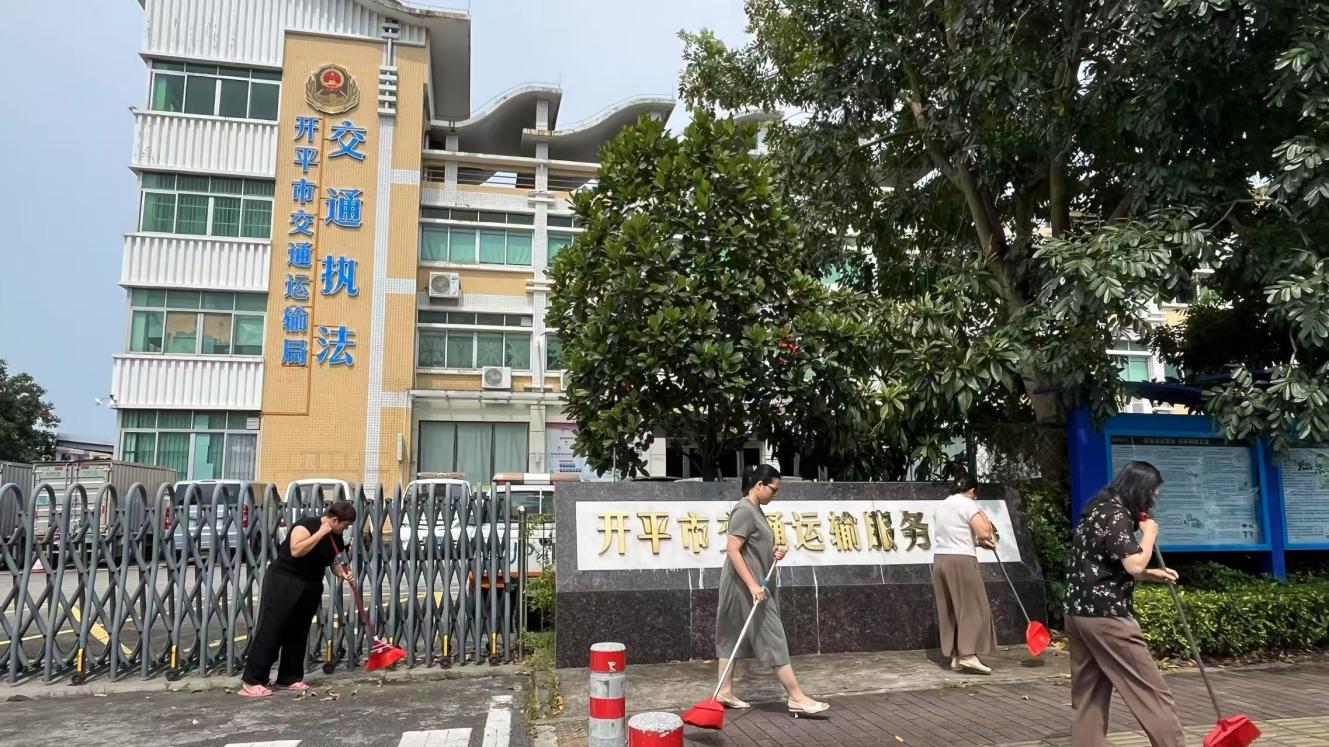開平市交通運(yùn)輸服務(wù)中心對(duì)周邊地面進(jìn)行清掃