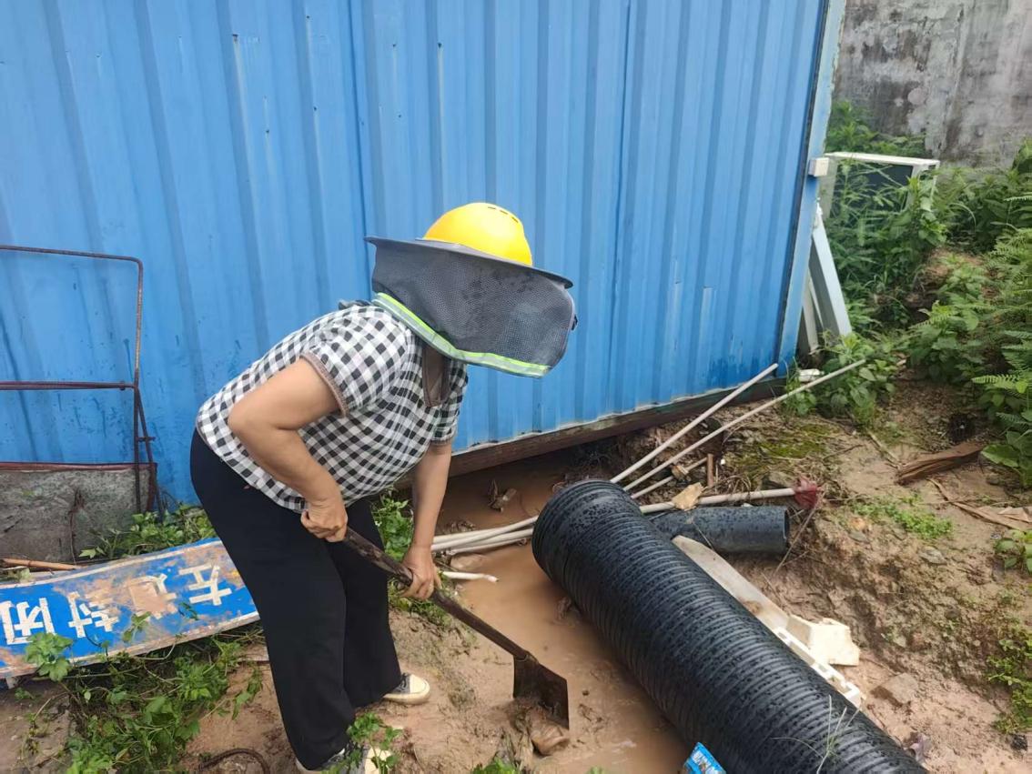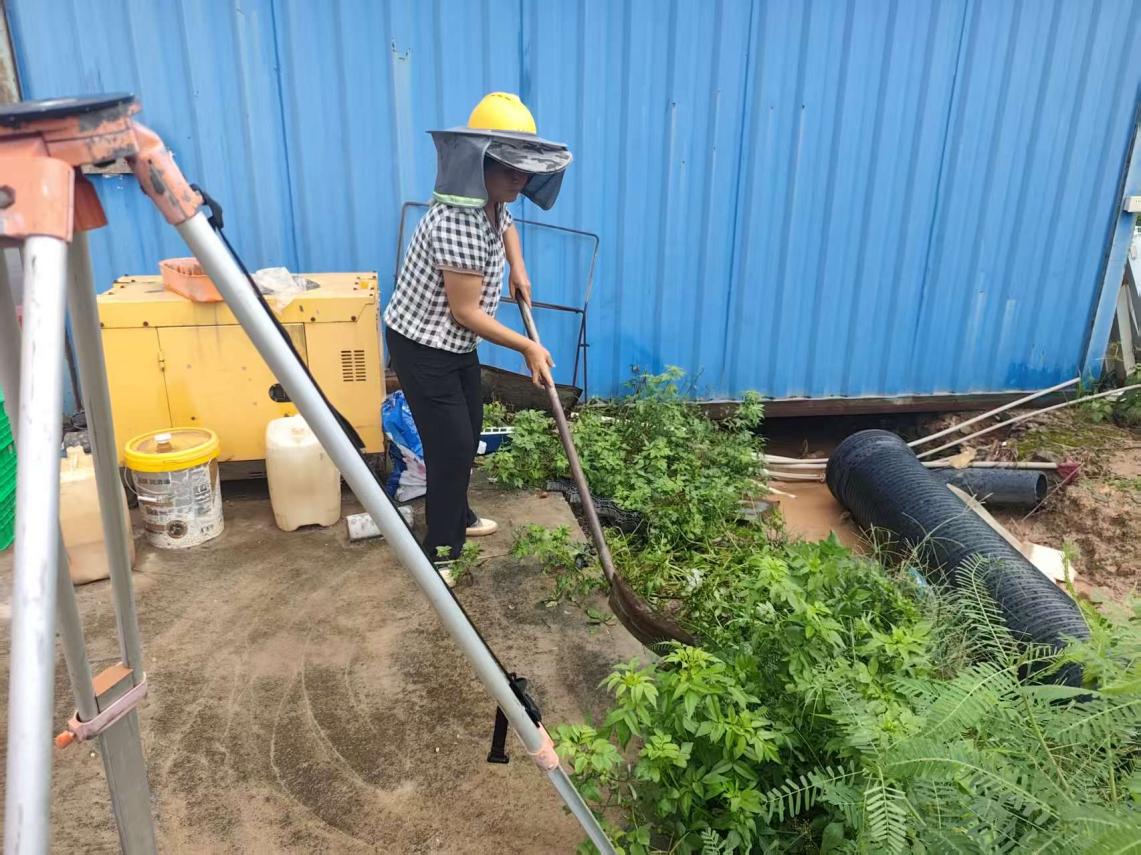 開平市縣道紅龍線(梁金山旅游公路及金章大道段)工程—金章大道段工作人員在對(duì)工人生活區(qū)進(jìn)行雜草及積水清理
