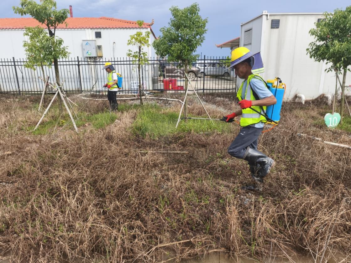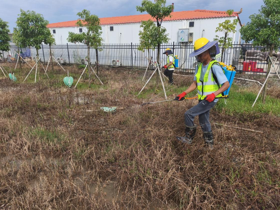 三埠港搬遷項(xiàng)目(開平市三埠港區(qū)工程)工作人員噴灑滅蚊藥