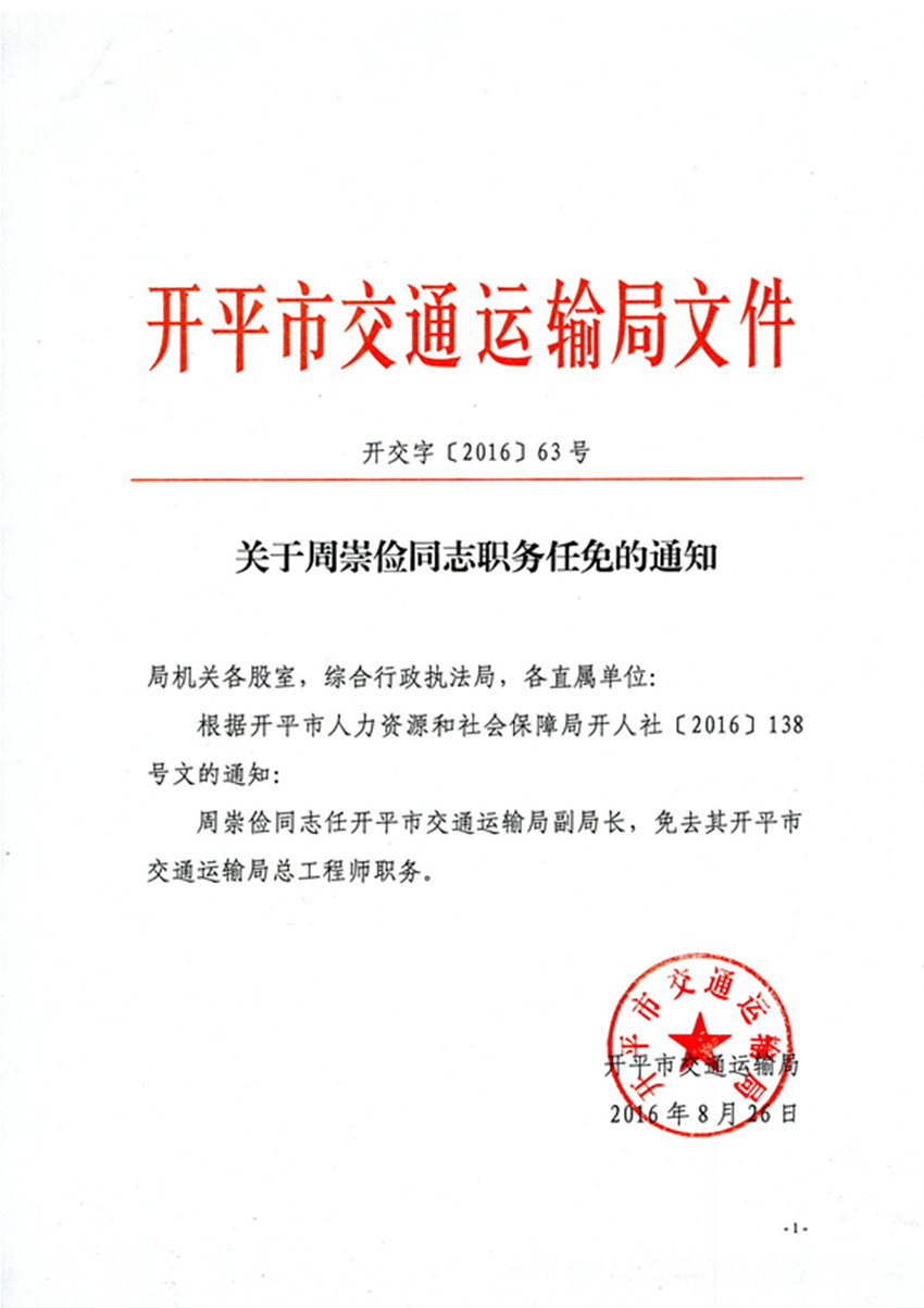 關(guān)于周崇儉同志職務(wù)任免的通知
