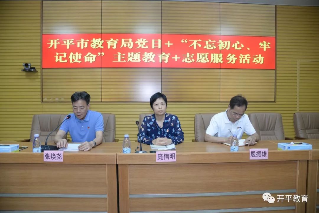 為進一步教育引導黨員干部勇當先鋒模范、做好示范表率作用,以風清氣正的政治生態(tài)推動單位成為市模范機關新標桿,6月3日上午,開平市教育局開展黨日+“不忘初心、牢記使命”主題教育+志愿服務活動,此次黨日活動由室內(nèi)會議和戶外活動兩部分組成。市委宣傳部常務副部長荊筱磊出席了本次活動,教育局領導班子全體成員、局機關黨支部全體黨員及局直基層黨組織義工代表隊共130多人參加活動。