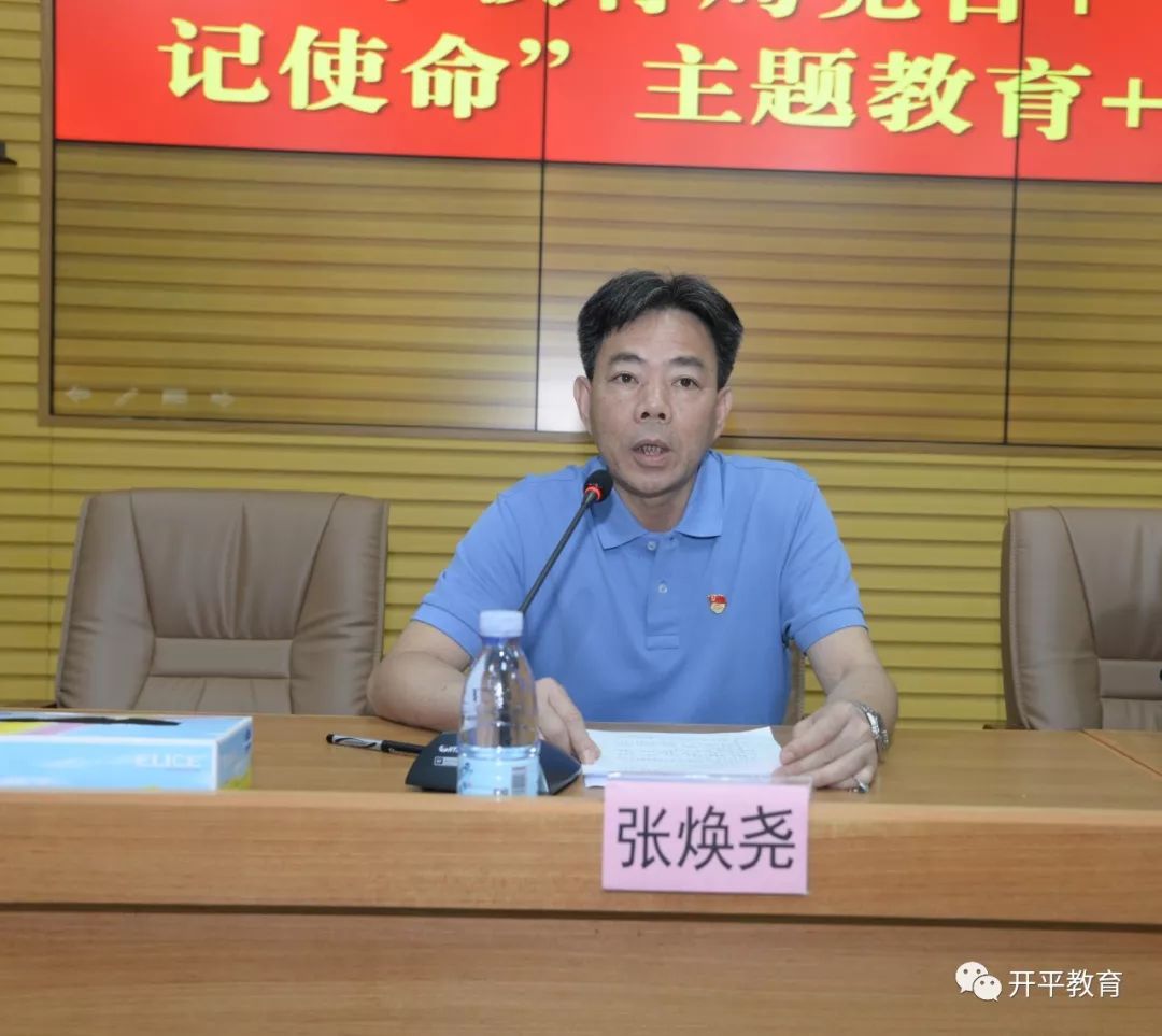 首先,局機關黨支部在七樓會議室召開會議。局機關黨委書記張煥堯主持。在會上,教育局黨組書記、局長龐信明為2018年度優(yōu)秀共產(chǎn)黨員頒發(fā)了榮譽證書,并鼓勵全體黨員學優(yōu)秀、爭優(yōu)秀、做優(yōu)秀,堅定信仰信念信心,錘煉忠誠干凈擔當?shù)恼纹犯瘢l(fā)揚優(yōu)良作風,勇創(chuàng)工作新業(yè)績。接著,開展“不忘初心、牢記使命”主題教育,一是龐信明局長傳達黨中央、省委“不忘初心、牢記使命”主題教育工作會議精神,要求全體黨員以積極的態(tài)度、振奮的精神參與到主題教育活動中來,筑牢信仰之基、補足精神之鈣、把穩(wěn)思想之舵,把不忘初心的標尺立起來,把牢記使命的責任扛起來,把黨員的先鋒形象彰顯出來,把黨組織的戰(zhàn)斗堡壘作用發(fā)揮出來,在守初心中鑄忠誠,在擔使命中顯風骨,在找差距中補短板,在抓落實中見成效,確保主題教育在教育系統(tǒng)落地、生根、發(fā)芽、開花、結(jié)果,推動市教育局成為開平市模范機關新標桿;二是進行黨課教育,邀請開僑中學政教處副主任譚杰老師為黨員們上黨史教育課,讓全體黨員重溫黨的光輝歷程和豐功偉績,教育全體黨員要堅定理想信念,踐行全心全意為人民服務的根本宗旨。譚主任的講課,內(nèi)容豐富,條理清晰,生動精彩,感染力強,大家獲益良多。會議還組織全體黨員組織學習6月份組織生活清單三個必選內(nèi)容和三個備選內(nèi)容。